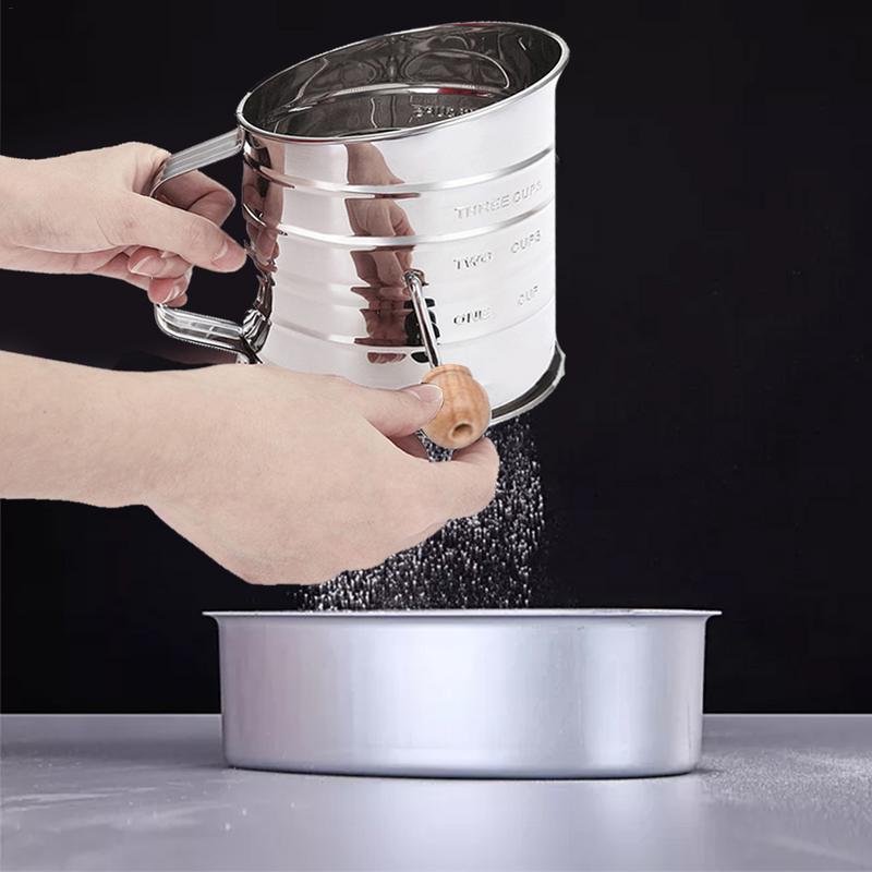Hand-pressed stainless steel flour sieve