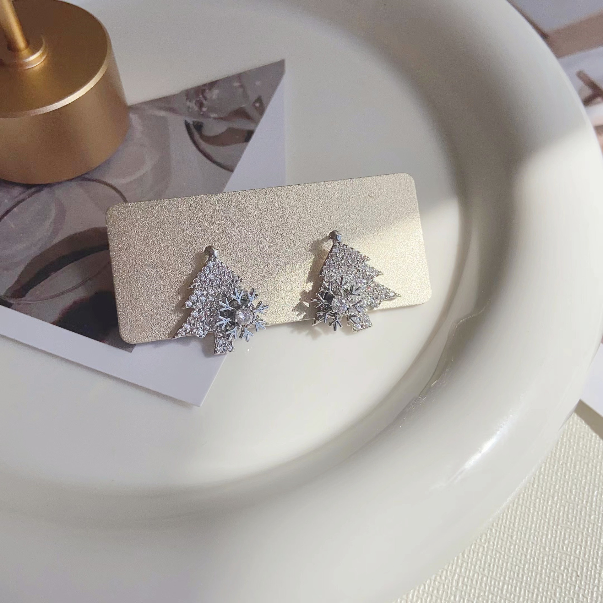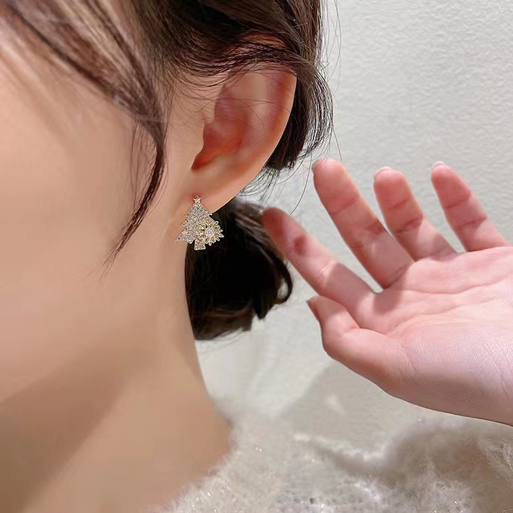 Color: gold revolving Christmas tree 925 silver needle, silver revolving Christmas tree 925 silver needle