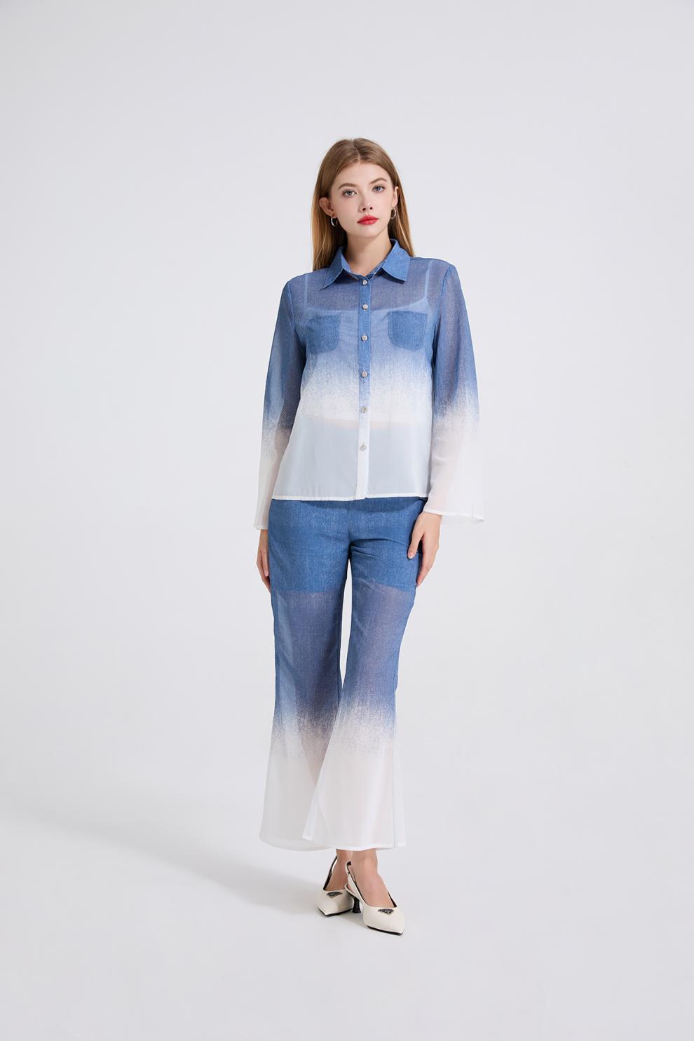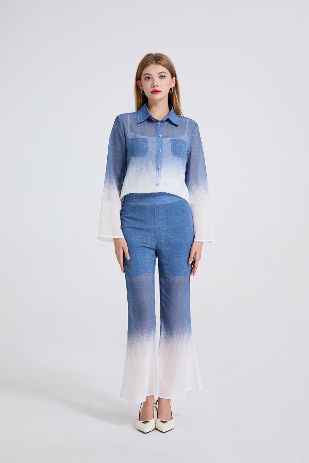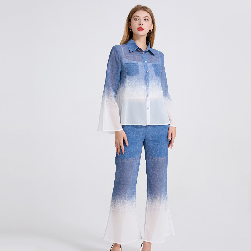 Product information: Color: blue Size: S,M,L,XL,2XL Combination form: two-piece set Skirt length: long skirt Sleeve length: long sleeve Style: Street style Material: chiffon