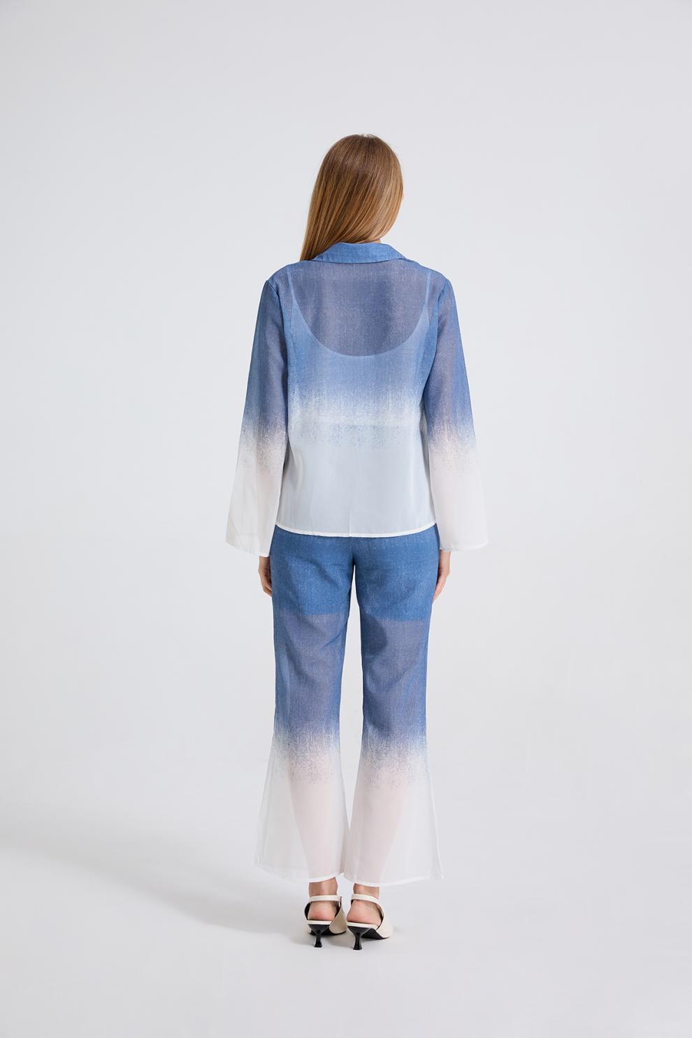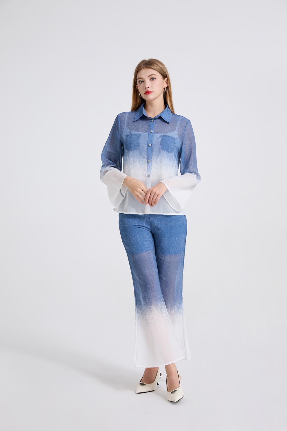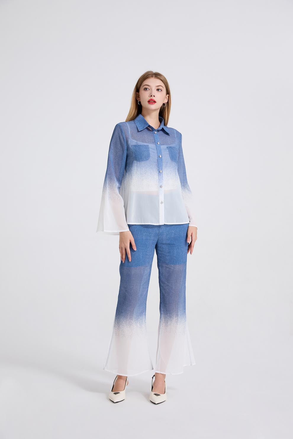 Product information: Color: blue Size: S,M,L,XL,2XL Combination form: two-piece set Skirt length: long skirt Sleeve length: long sleeve Style: Street style Material: chiffon