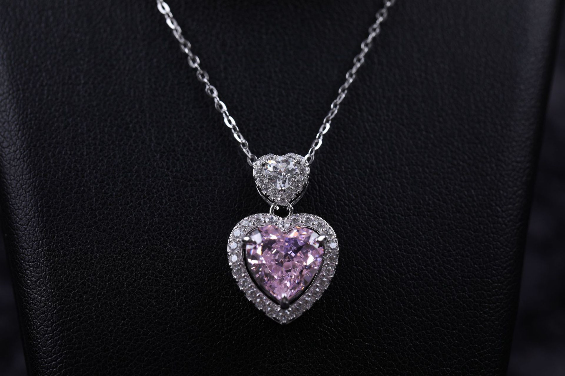Product information:Color: Girl pink love ice cut flower zirconApplicable people: womenPendant material: 925 silverChain style: O-shaped chainMaterial: SilverPurity: 925 silverPopular elements: Love/heartStyle: Princess