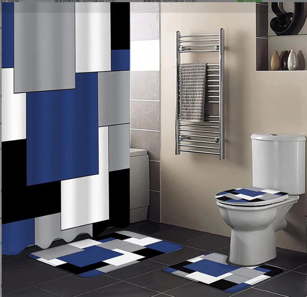 Product information:Pattern: Flower shower curtainColor: four-piece set-shower curtain floor mat U-shaped Mat toilet lidMaterial: PolyesterStyle: light luxury