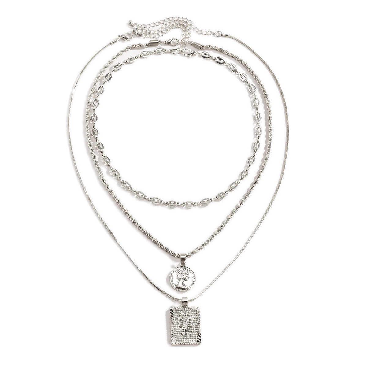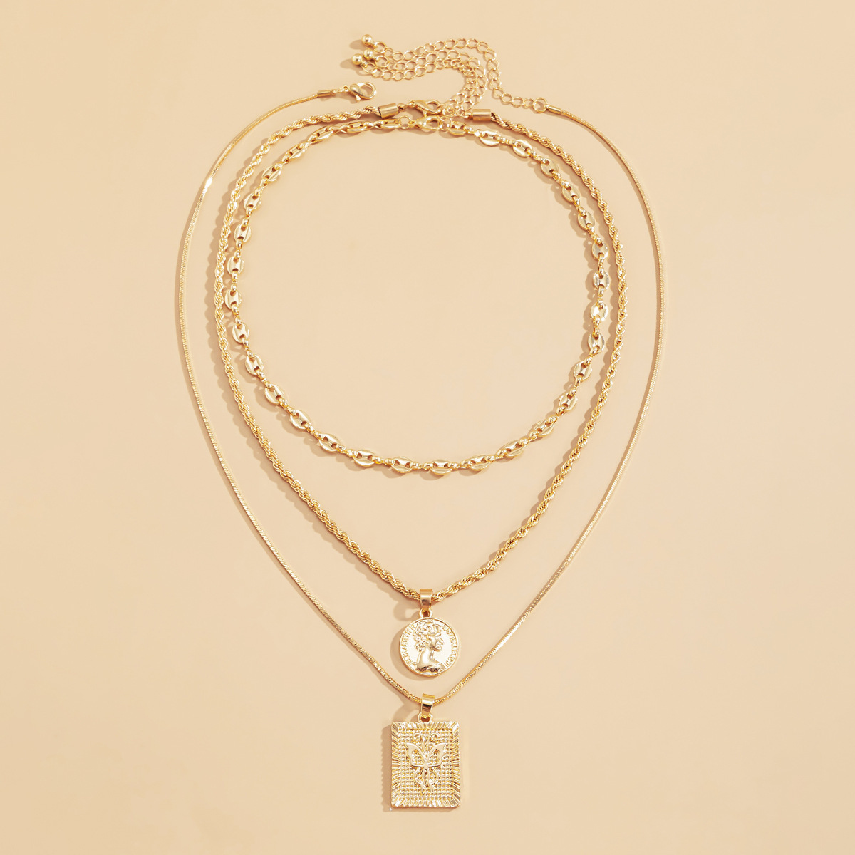 Material: iron + alloy + copperTreatment process: electroplatingType: NecklaceStyle: Women'sExtension chain: 10cm or lessPendant material: alloyColor: golden suit, silver suit