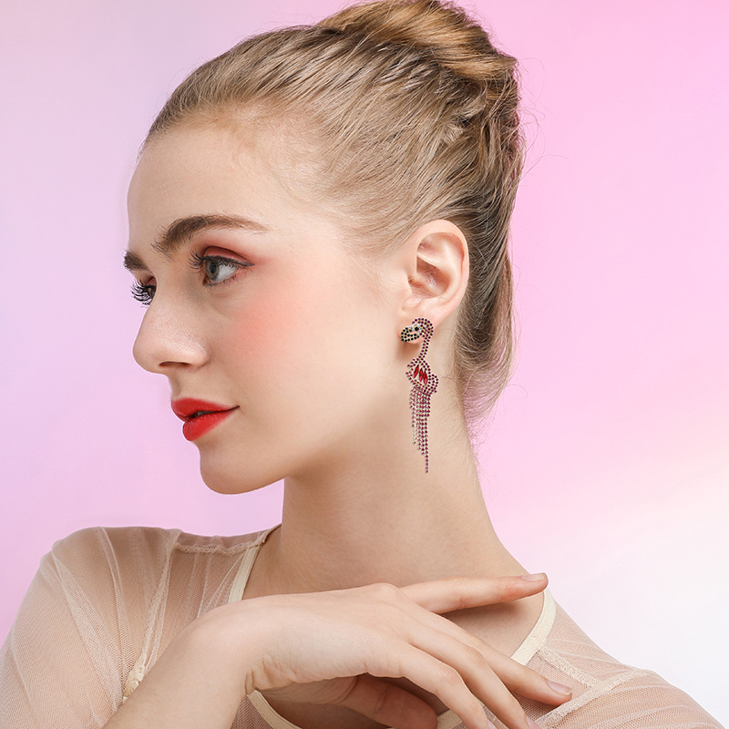 Product information:Style: Europe and AmericaMaterial: AlloyType: EarringsStyle: Women'sModeling: Animal/ZodiacInlay material: alloy inlaid artificial gems/semi-precious stonesColor: rose red, colorful