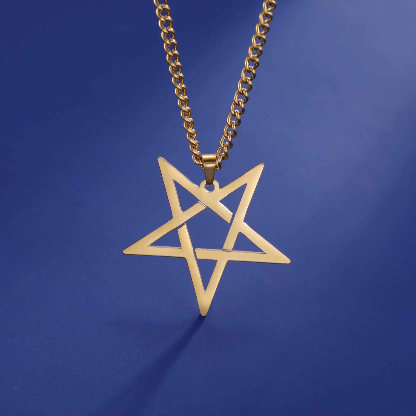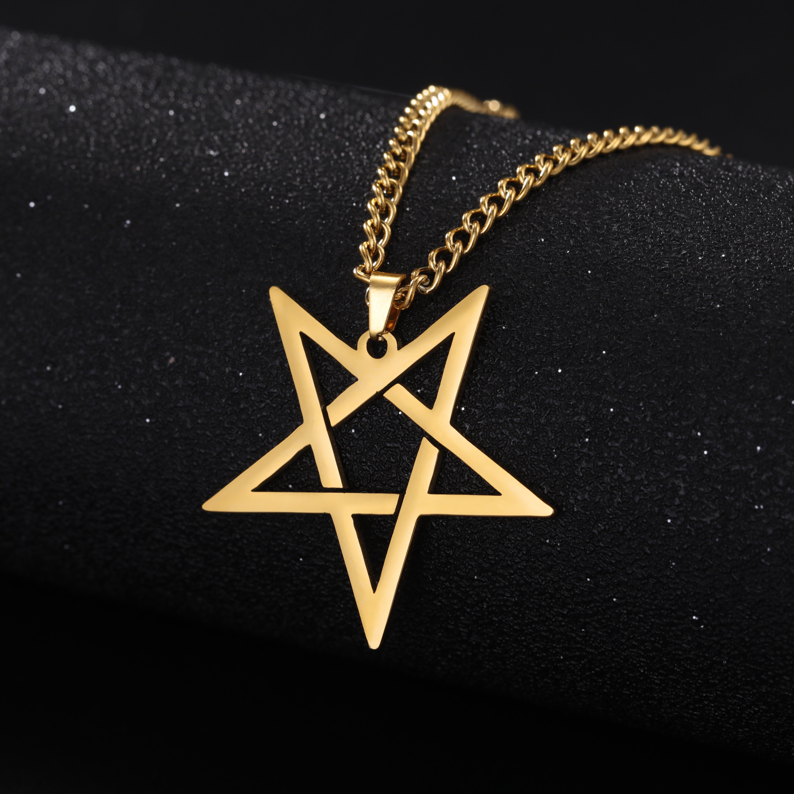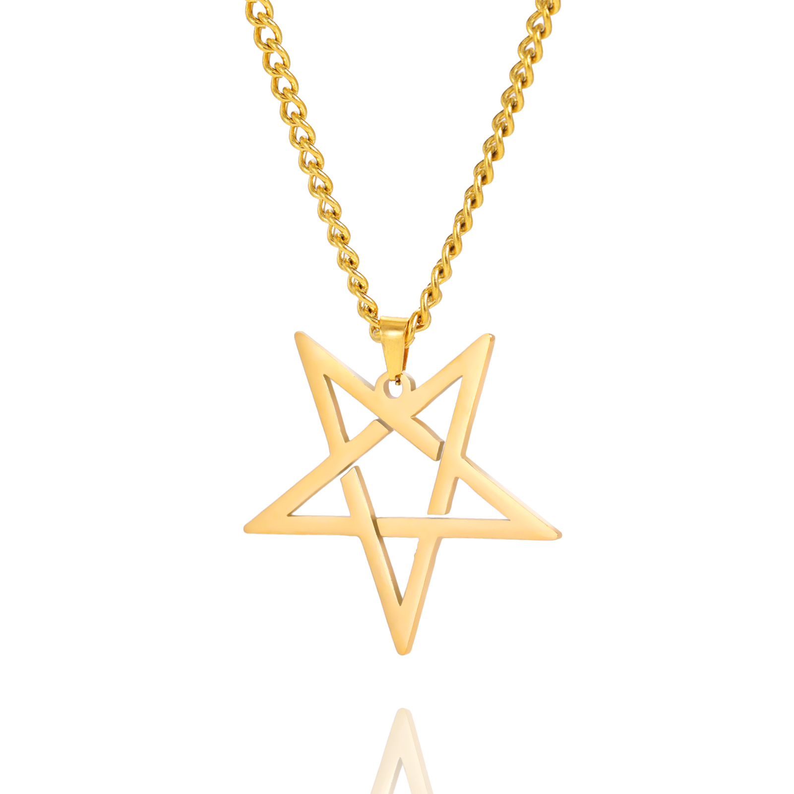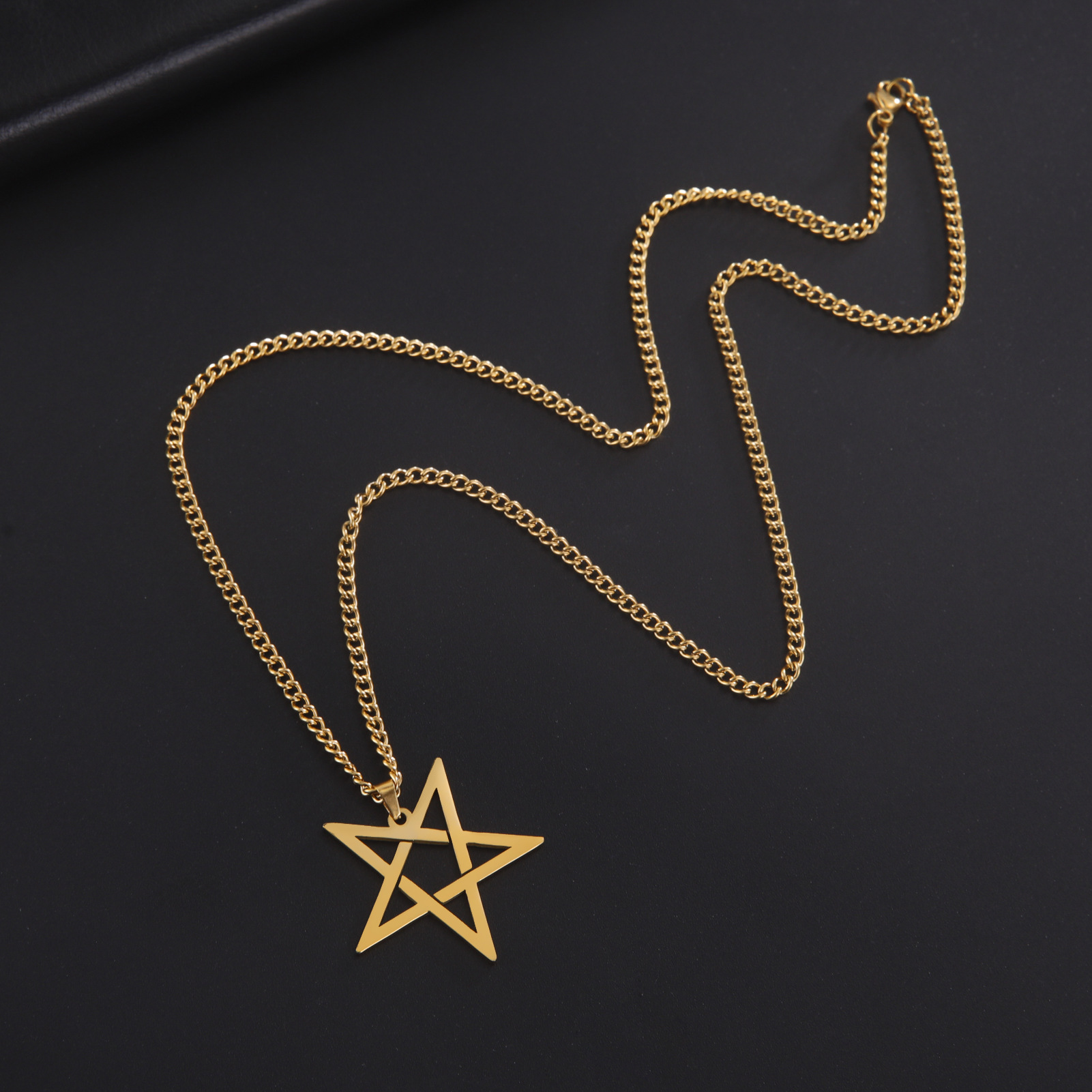 Product information:Treatment Process: ElectroplatingColor: steel, goldApplicable people: UnisexPendant material: titanium steelChain style: cross chainMaterial: Stainless steelShape: pentagramStyle: Natural