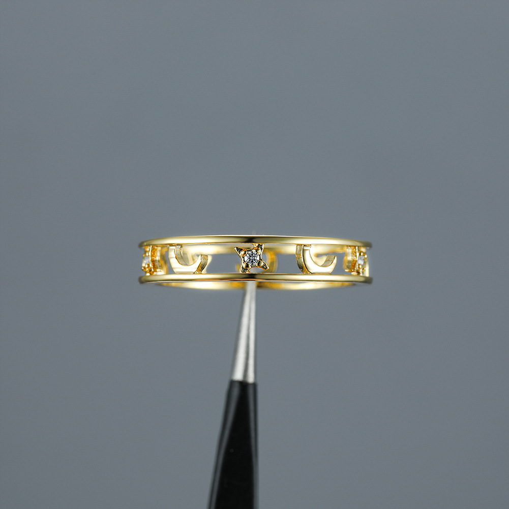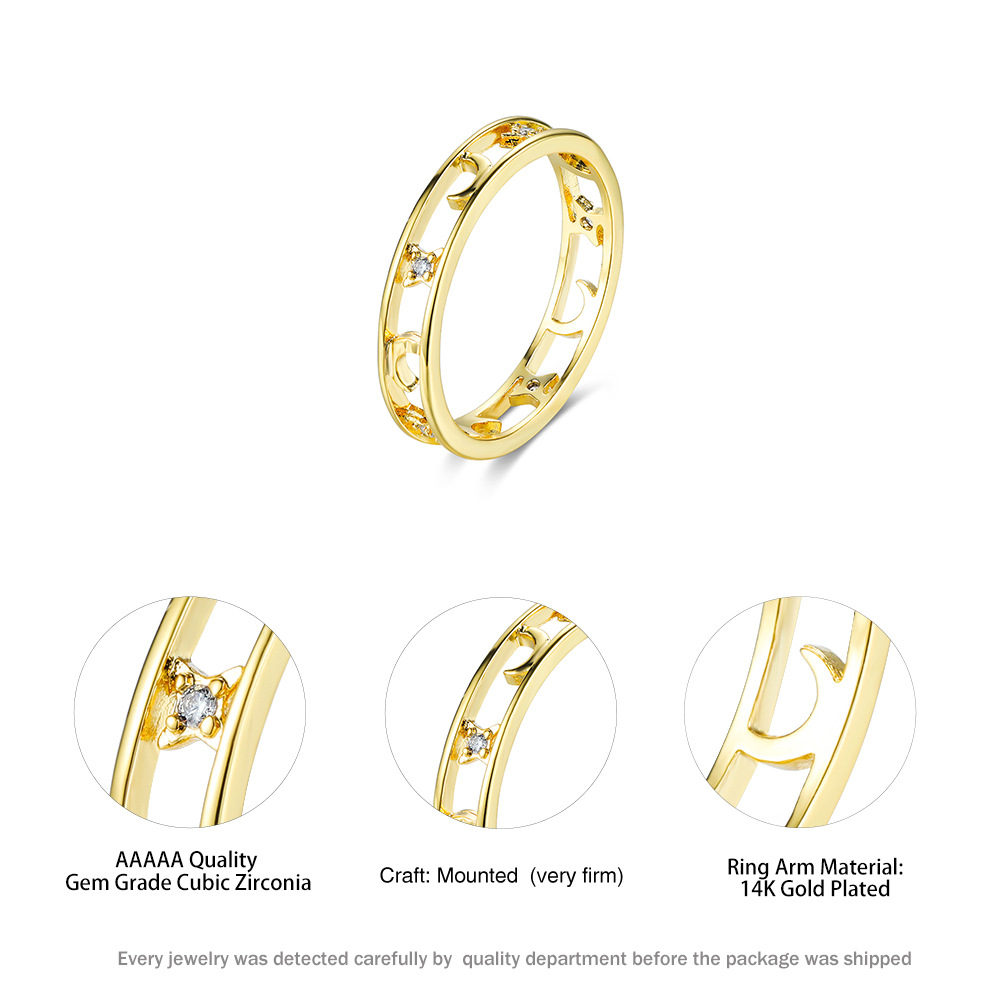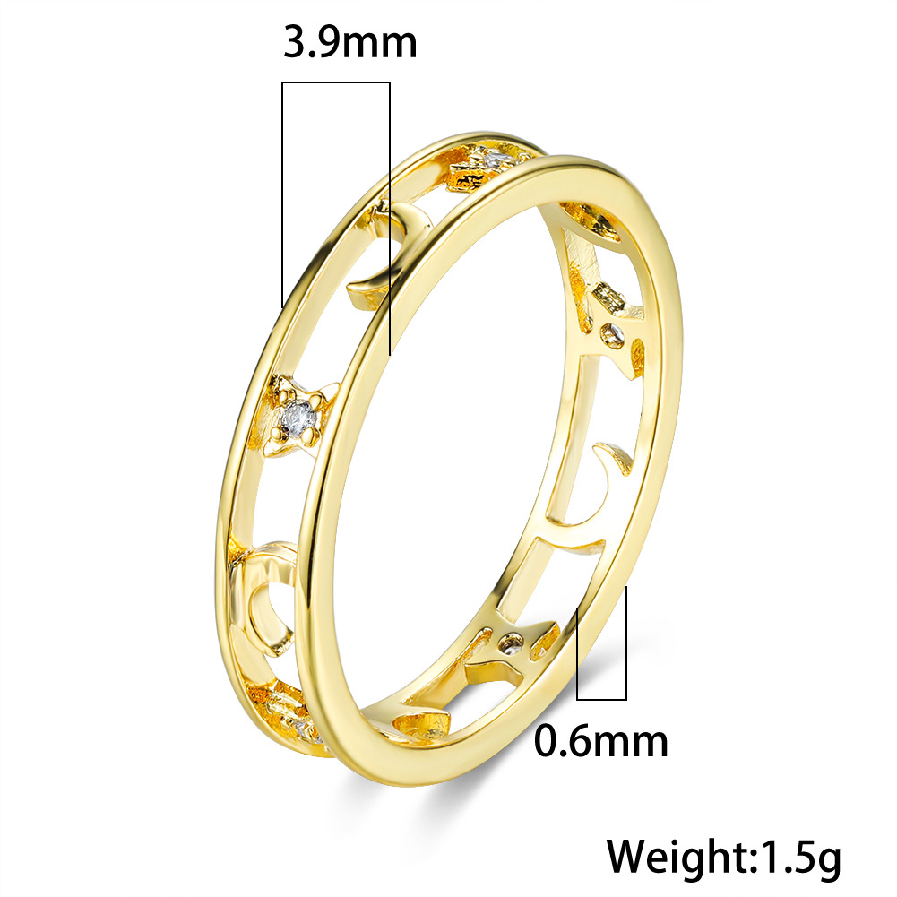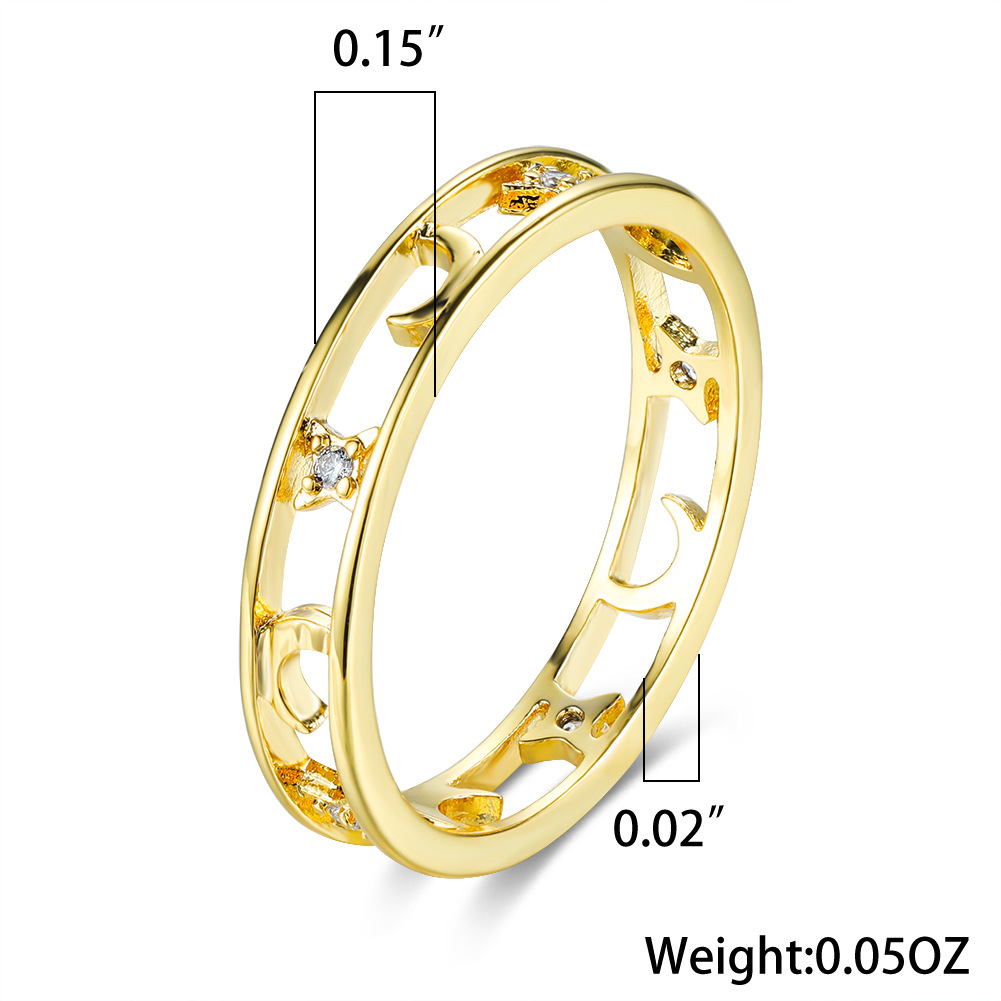 Type: ringMaterial: CopperShape: star and moonTreatment process: electroplatingStyle: Women'sInlay material: zirconColor: GoldSize: 6, 7, 8, 9, 10