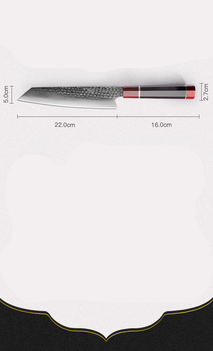 Purpose: Suitable for cutting and matching foods such as meat, fish, fruits, vegetables, etc. (Note: Do not chop hard objects and frozen ingredients, and do not slap food with a knife.