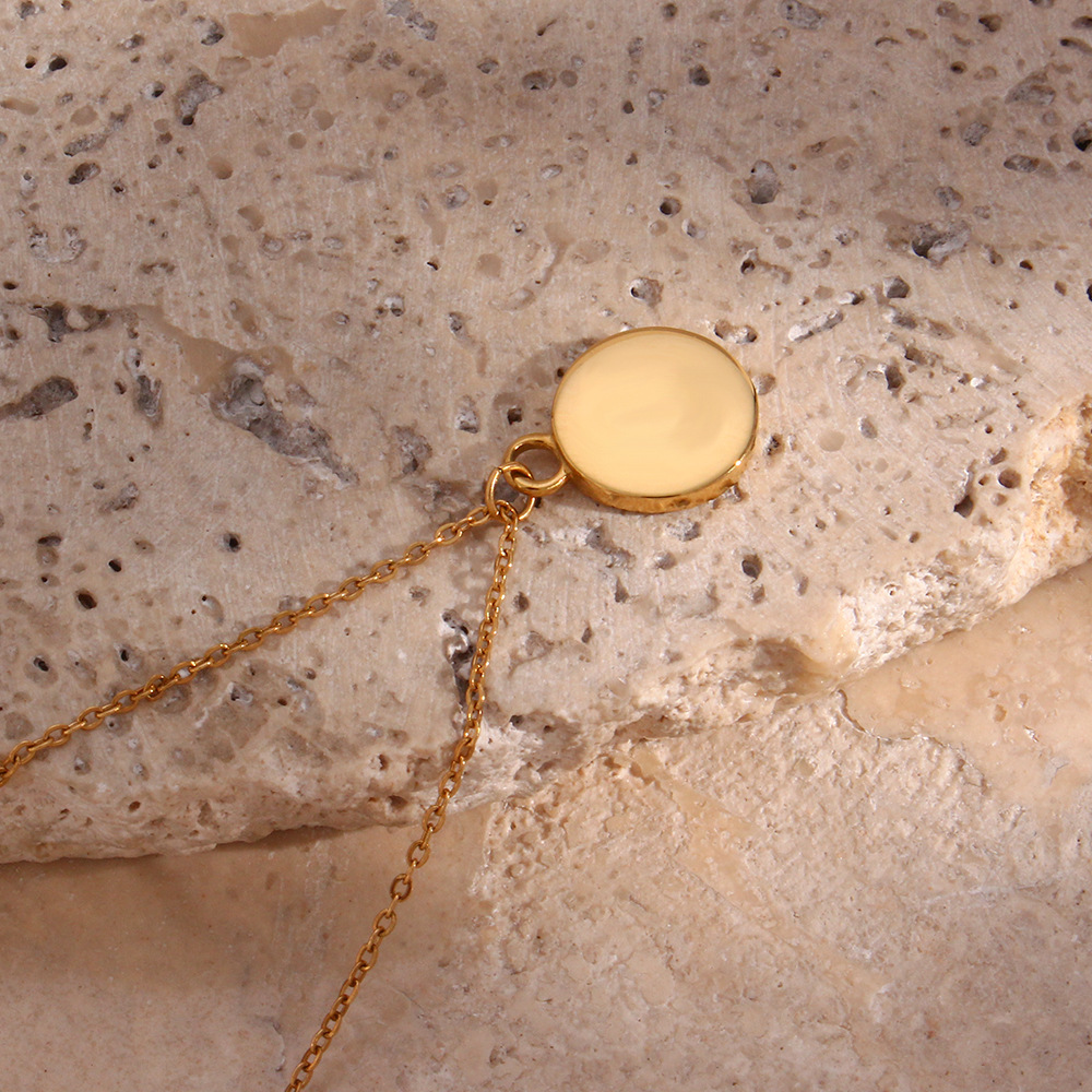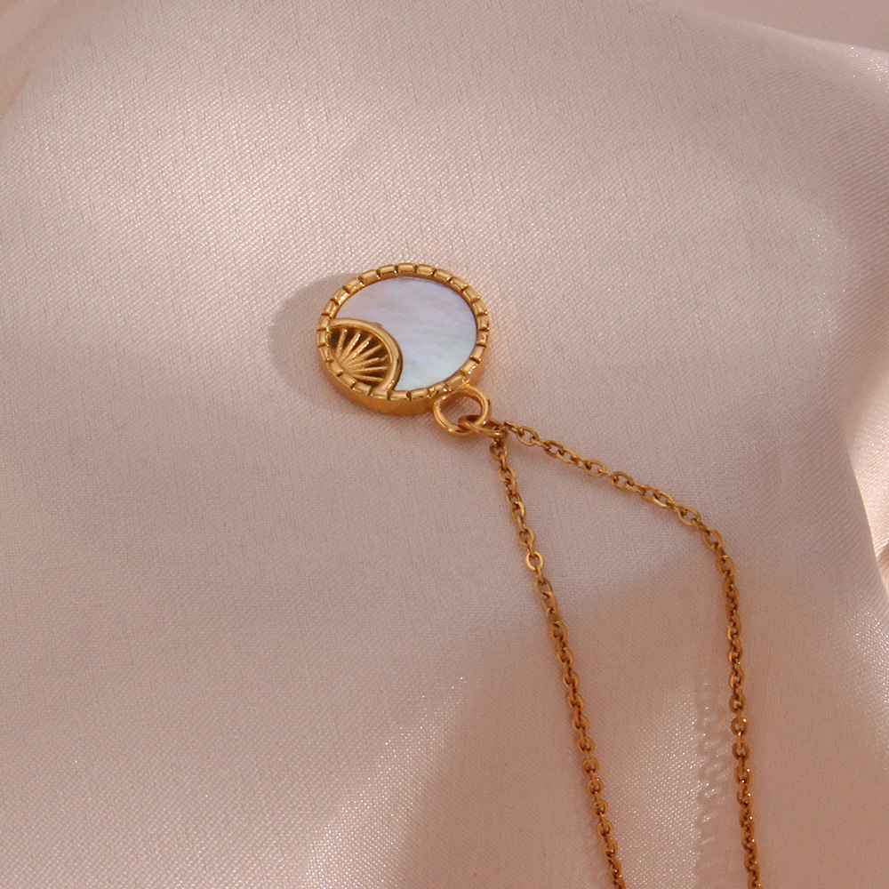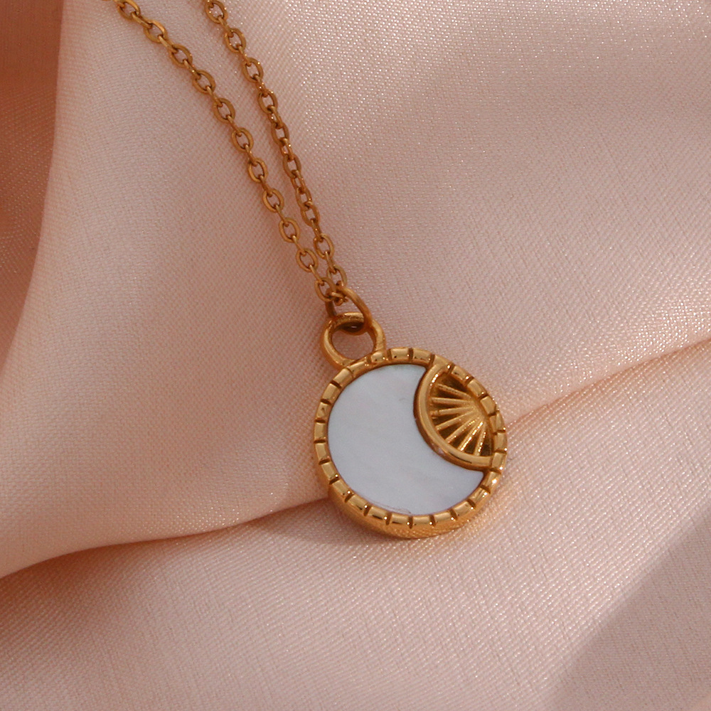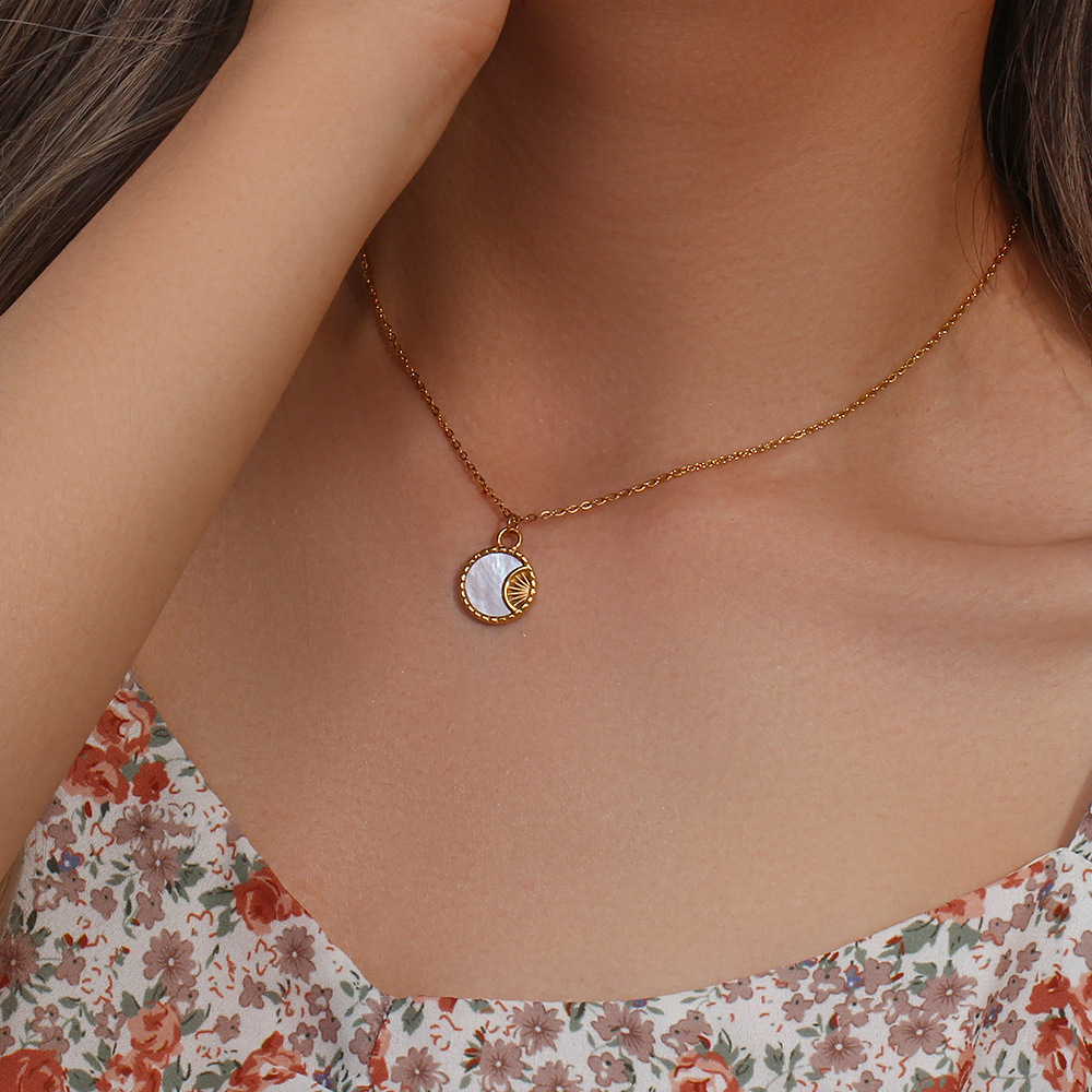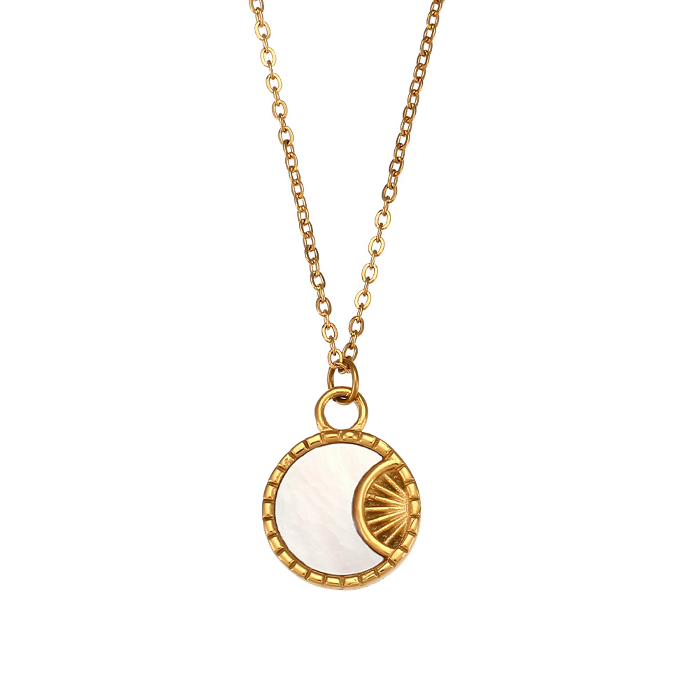 Color: Shell Moon Sunshine Small Round Tag Pendant Necklace - Gold