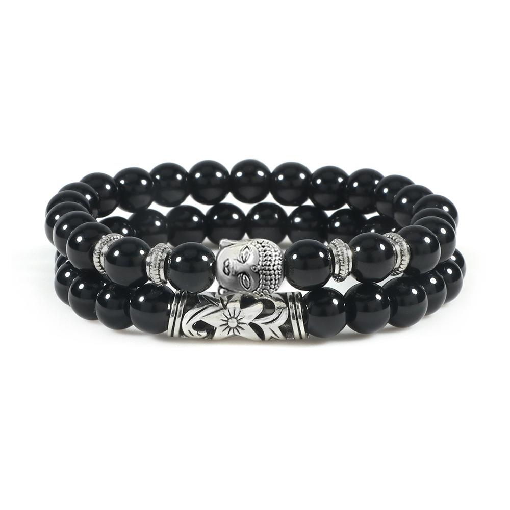Material: Black matte+electroplated accessories+alloy Buddha head+elastic thread