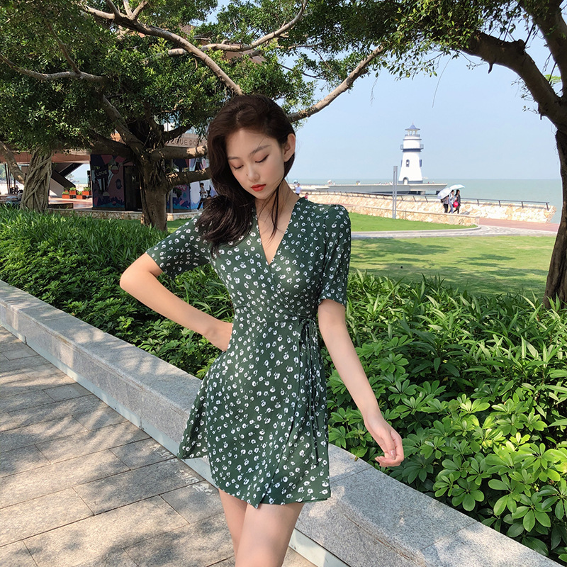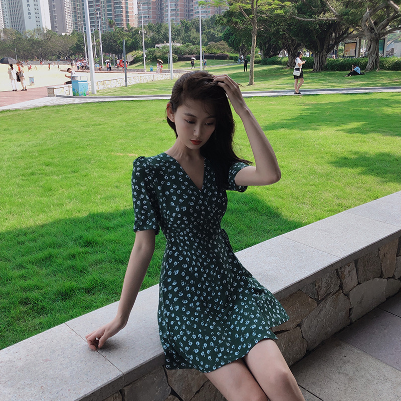 Niche retro V-neck floral dress