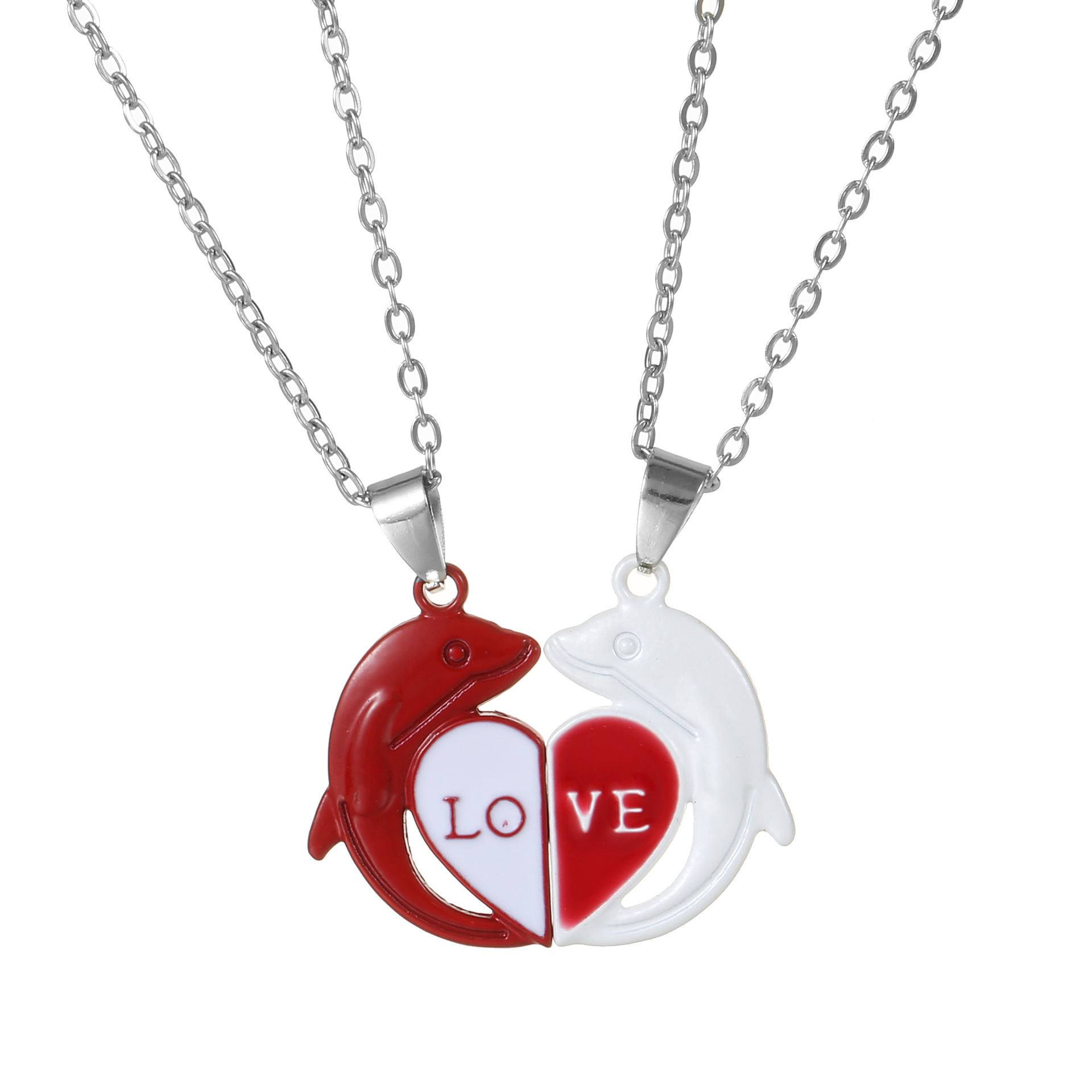 Color: A pair of white dolphins, a pair of Hearts-red hearts, a pair of Hearts-silver hearts, a pair of black and white dolphins, a pair of red and white dolphins, a pair of red dolphins, A pair of golden and white dolphins, a pair of golden dolphins, a pair of hollow out, white dolphins-a pair of key rings