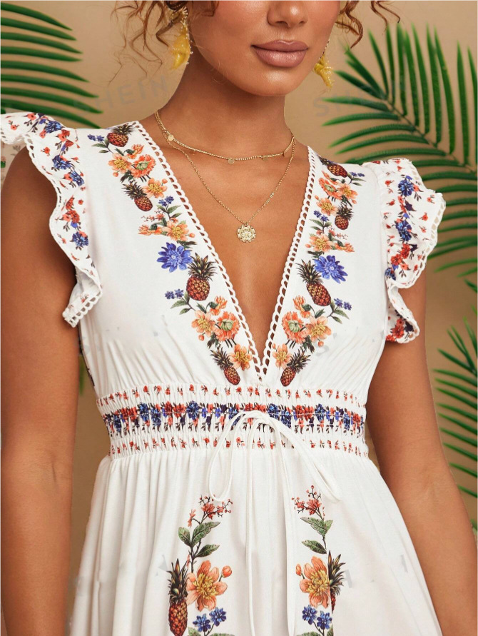 Product information: Pattern: plants and flowers Color: Picture color Size: S,M,L,XL Combination form: Single piece Fabric name: Polyester Long Sleeve: short sleeve Skirt classification: Dress Process: Printing