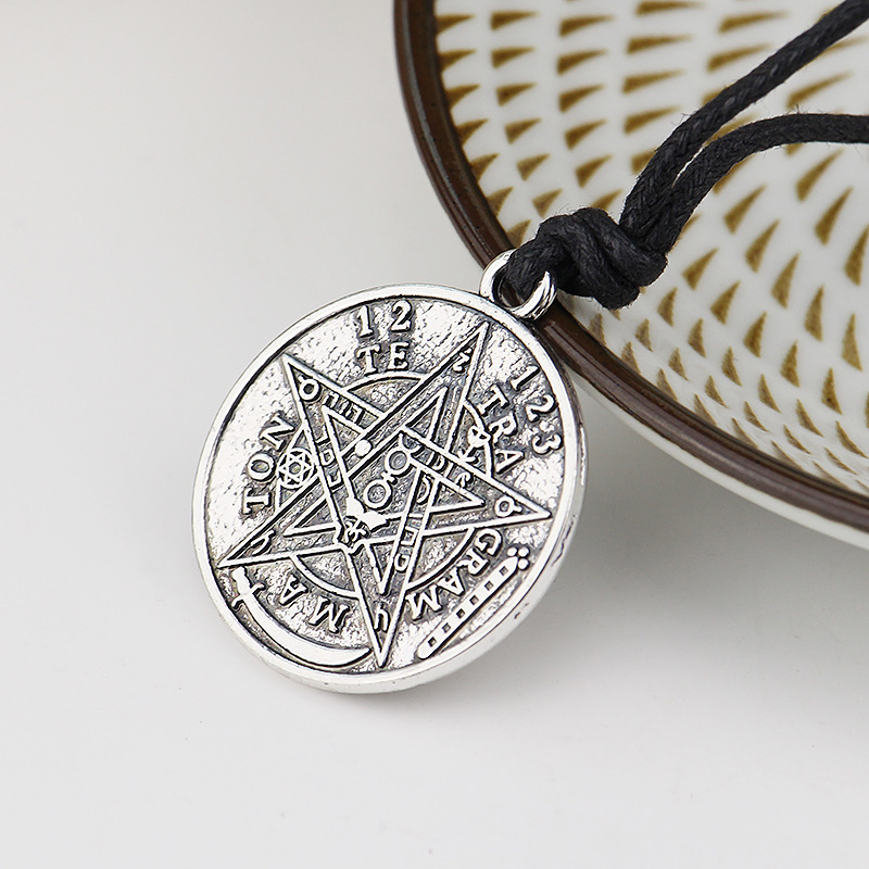 Product information:Material: AlloyProcessing technology: electroplatingType : NecklaceShape: PentagramColor: antique silver, box chainSize: 27*31mmPacking list:Necklace*1
