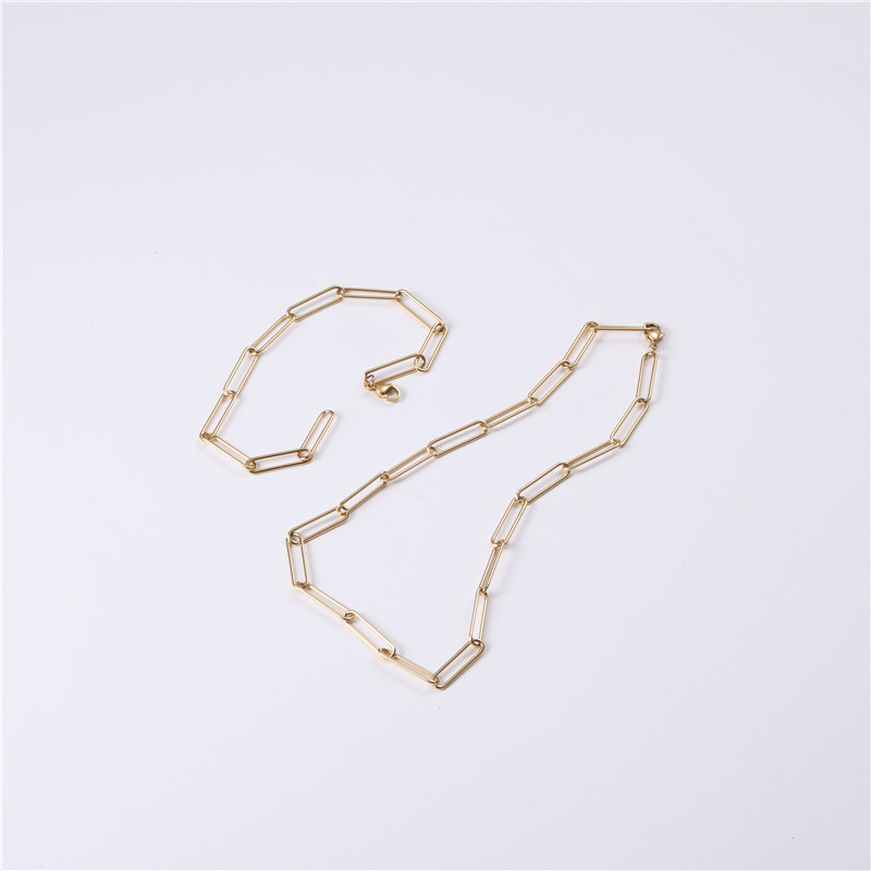 Vintage simple wide chain necklaceType: NecklaceStyle: Women'sMaterial: titanium steelColor: Golden necklace (length 38cm, width 0.5) N398, golden bracelet (length 22cm, width 0.5) Br398
