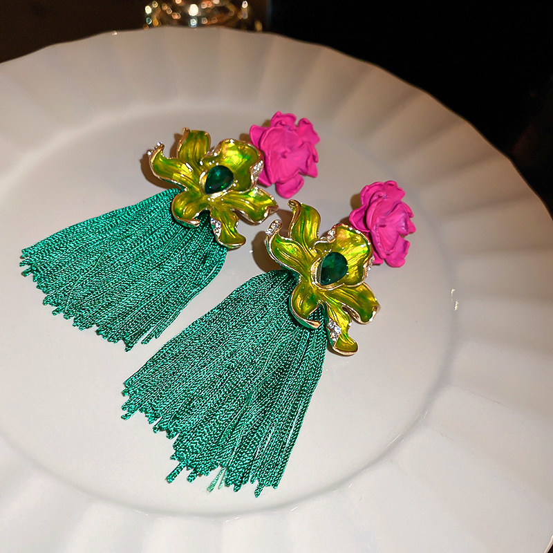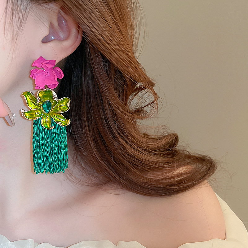 Product information:Color: Silver Needle-flower tassel earringsApplicable people: womenMaterial: AlloyShape: FlowerPopular elements: FlowersStyle: Retro
