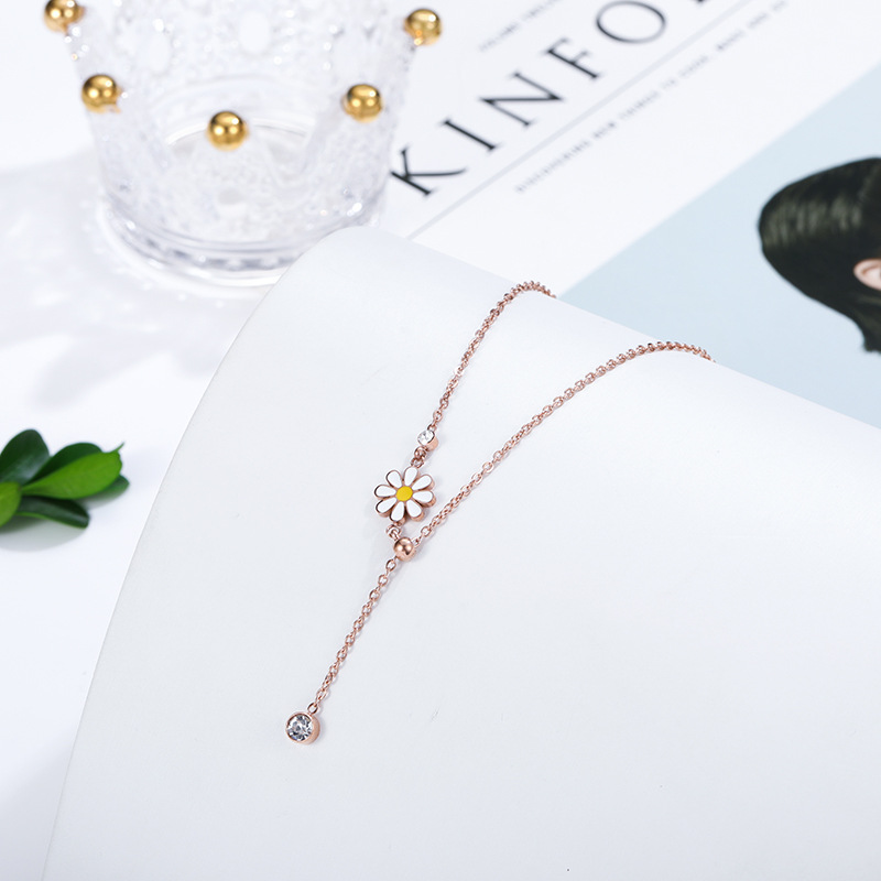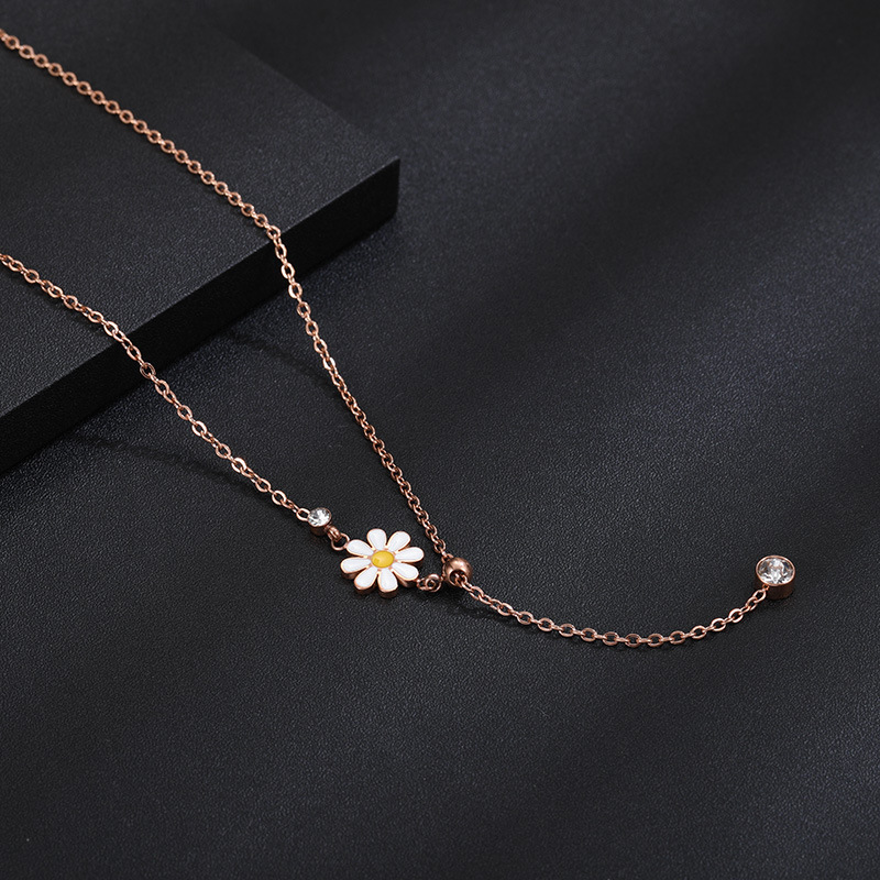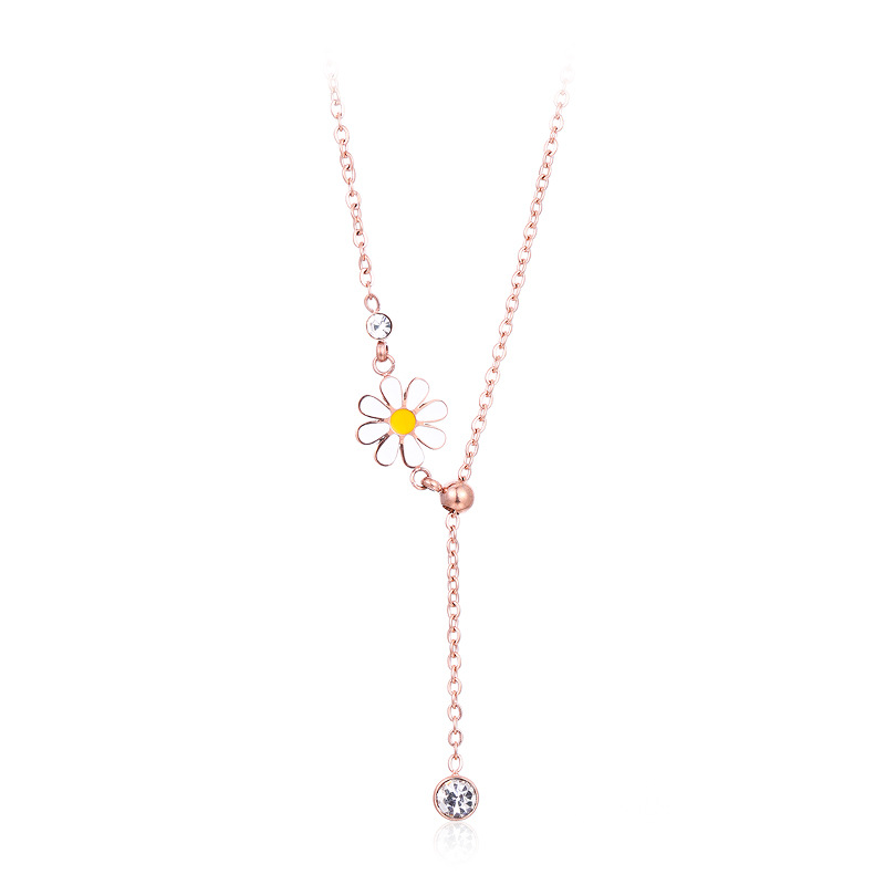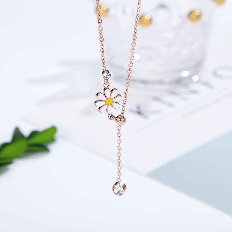 Product material:Material: Titanium steelDetails:Treatment process: ElectroplatingType: NecklaceStyle: Women'sStyle: FlowersPackaging: Individually packedExtension chain: 10cm or less