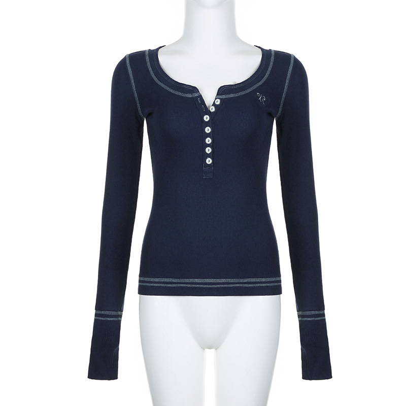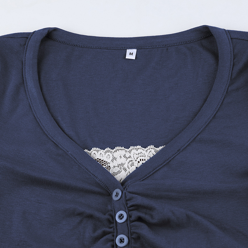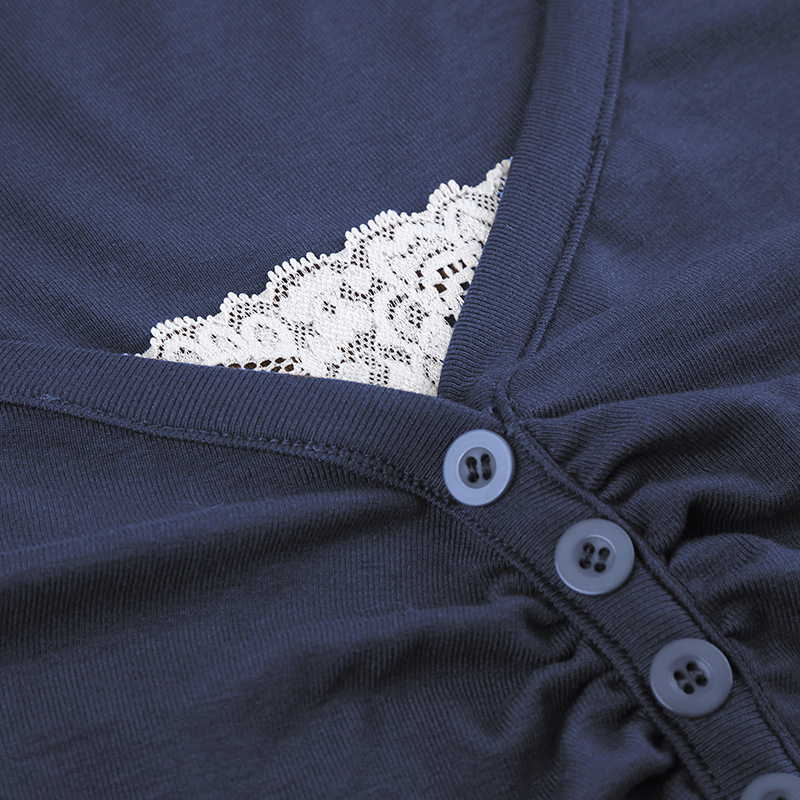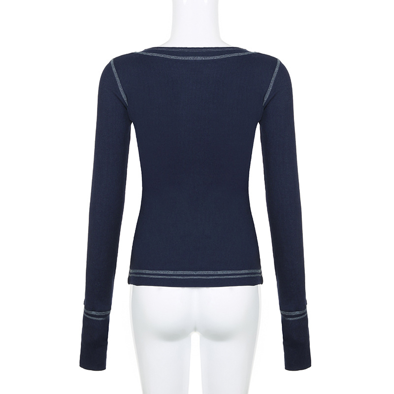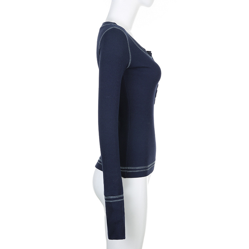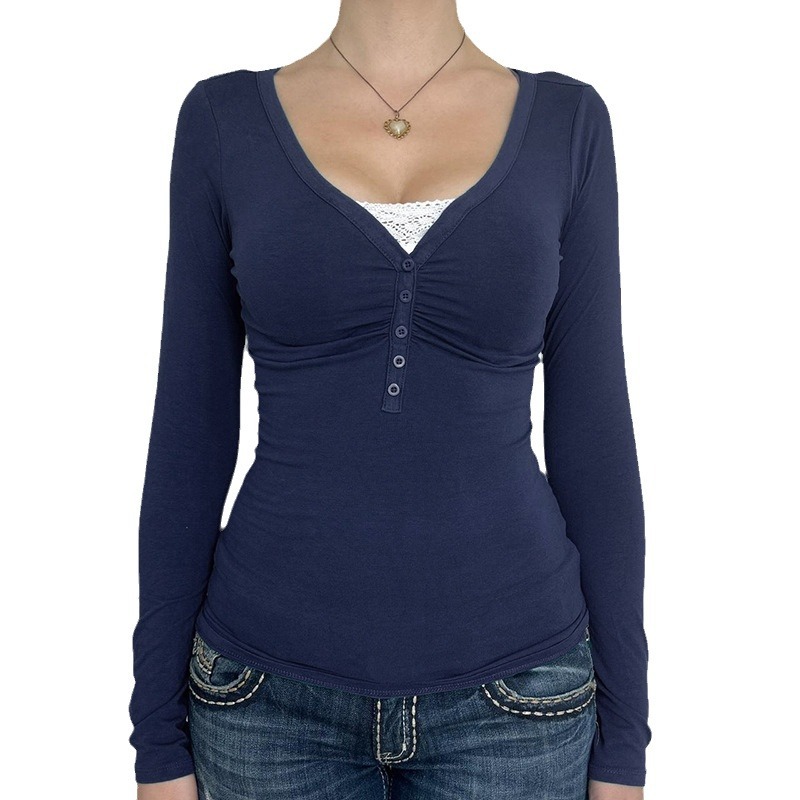 Product information: Color: 9048 dark blue Size: S,M,L Version: slim fit Style type: Street hipster Popular elements: lace Style: False two-piece suit Fabric name: knitted Main fabric composition: Cotton