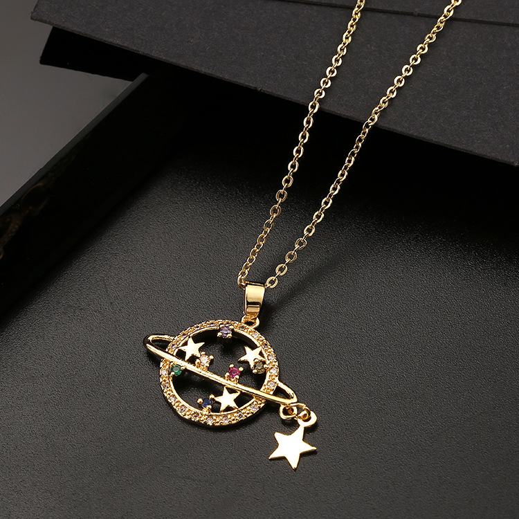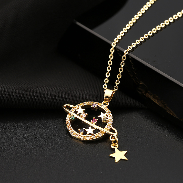 Product information:Style: European and AmericanMaterial: CopperProcessing technology: diamondType: NecklaceStyle: Women'sModeling: Stars and PlanetsPackaging: Individually packedColor: Planet