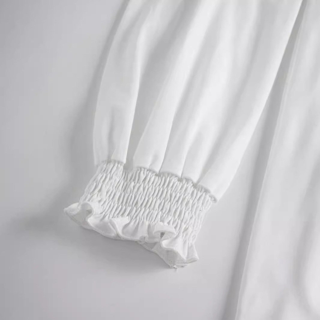 Product information: Color: White Sleeve type: ruffled sleeves Main fabric composition: Polyester Size: S,M,L,XL Version: Loose Sleeve length: long sleeve Popular elements: round neck Style: pullover