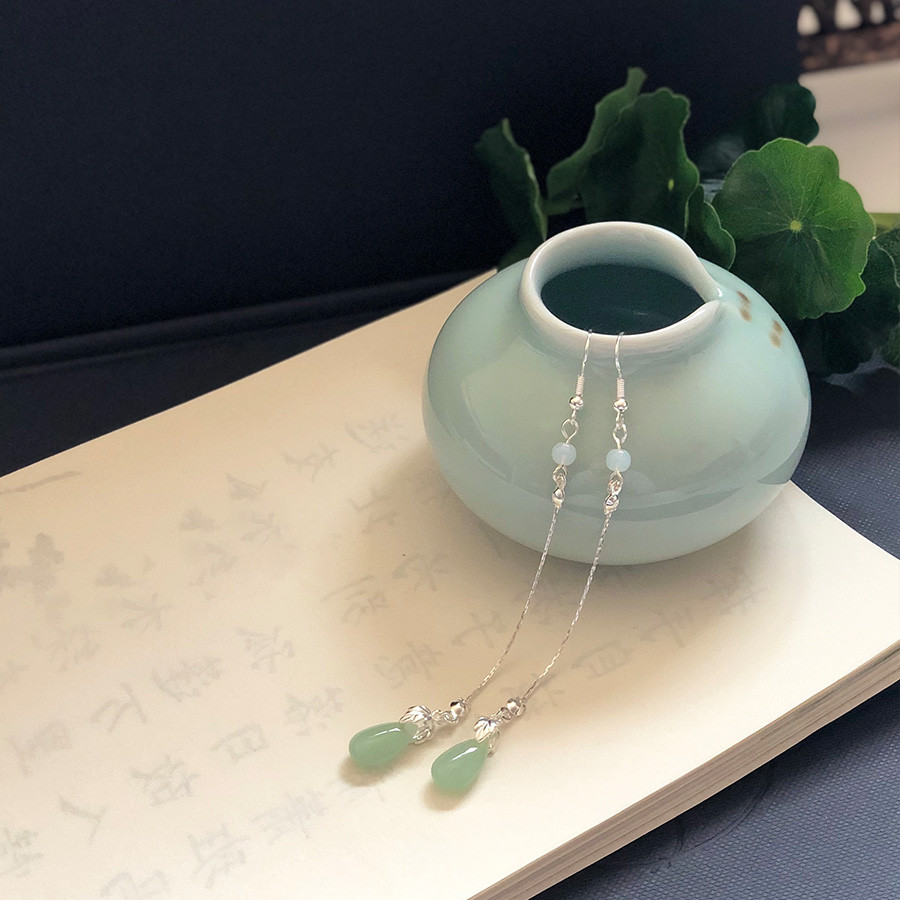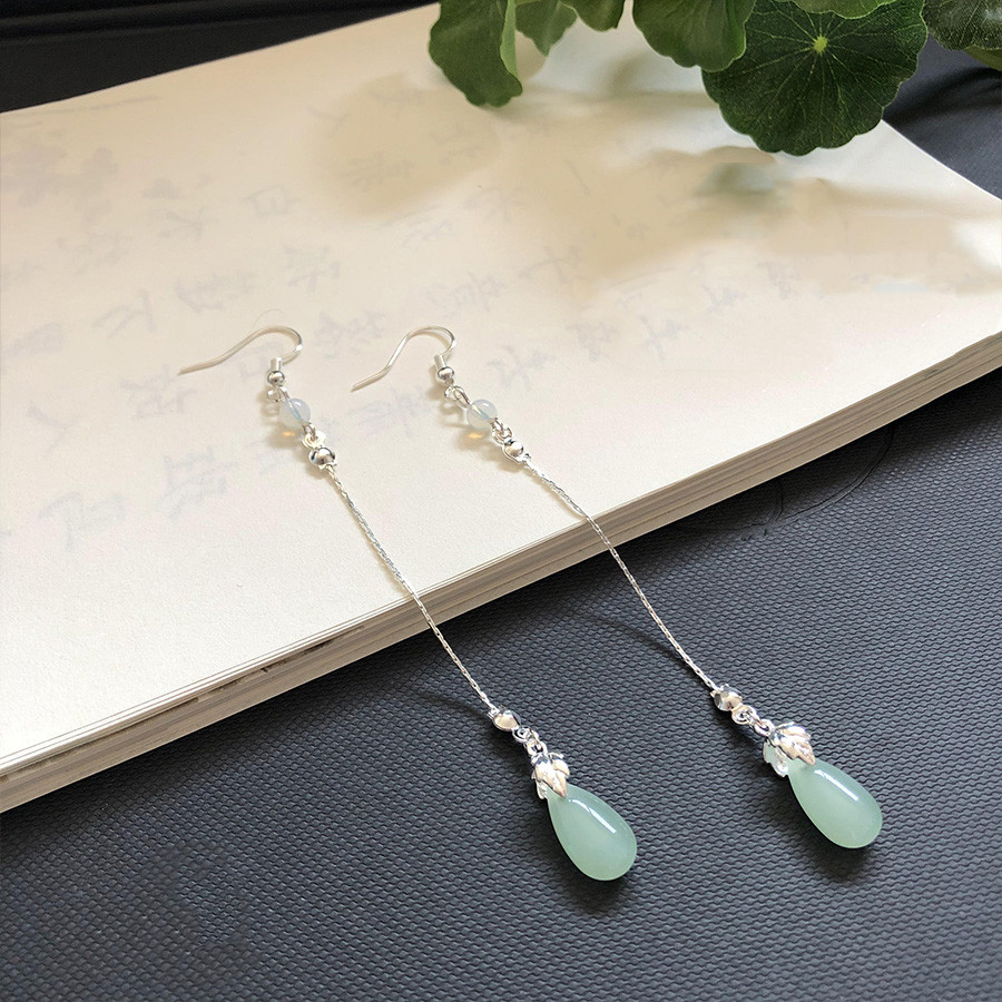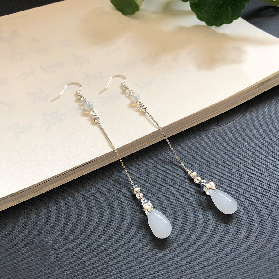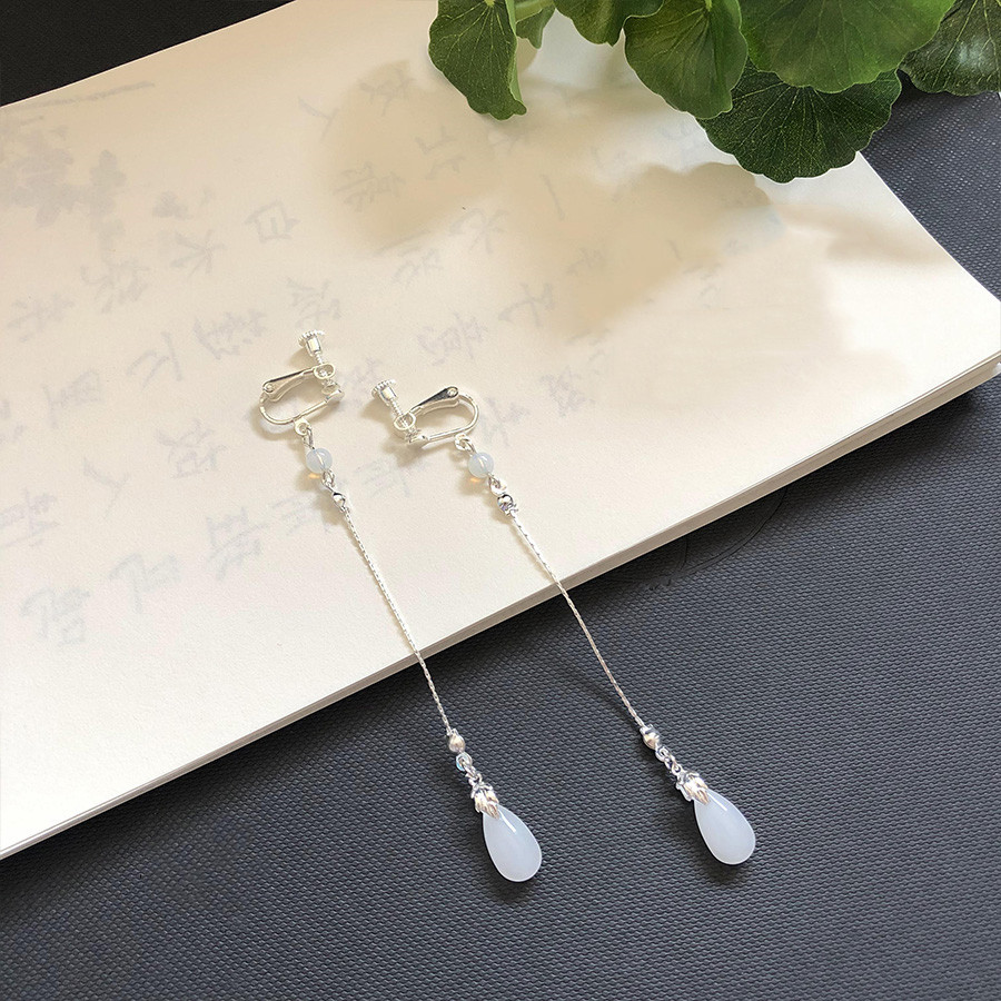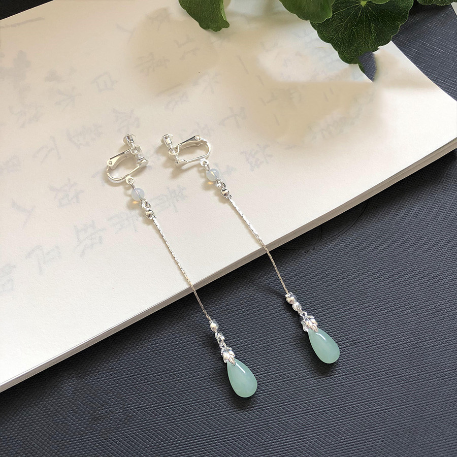 Product information :Material: alloy/silver/gold platingPattern: love/water drop/bellColor: sapphire water droplets-sapphire water droplets-ear clip white jade water droplets-white jade water droplets-ear clipPacking list:A pair of earrings