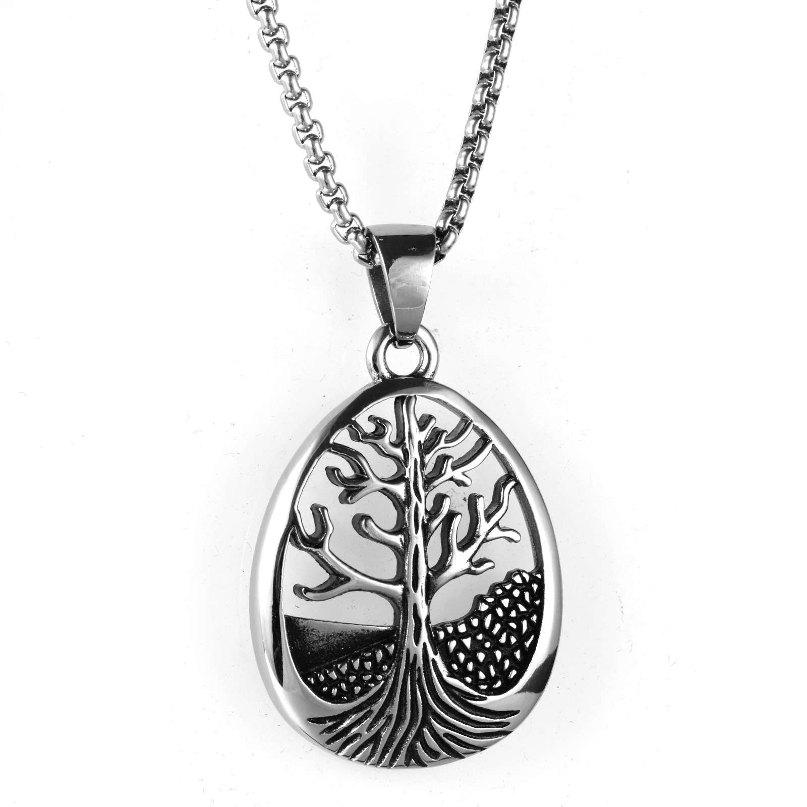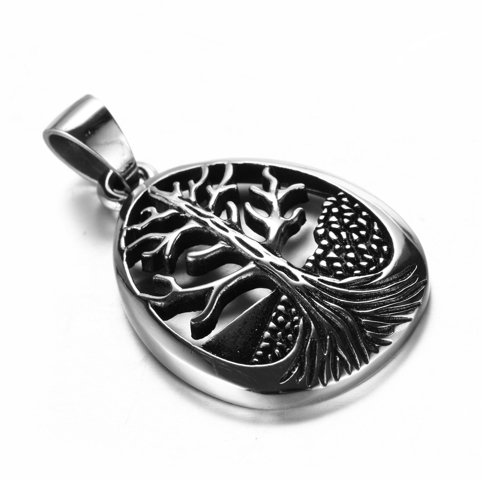 Tree Of Life Pendant Necklace Stainless Steel Crystal Round Necklace