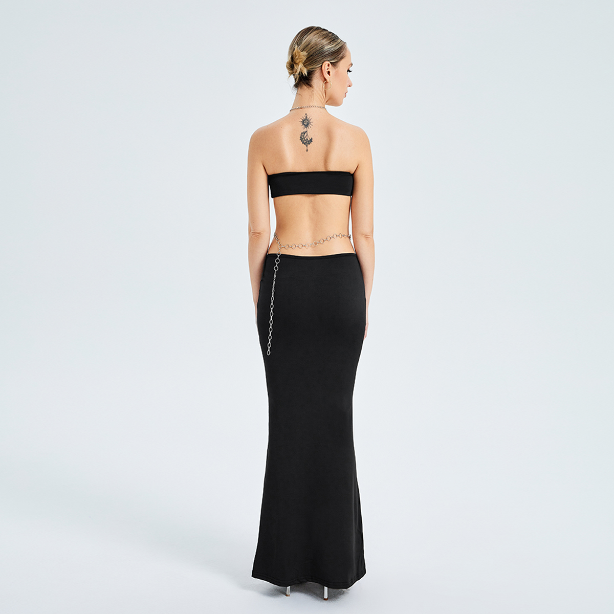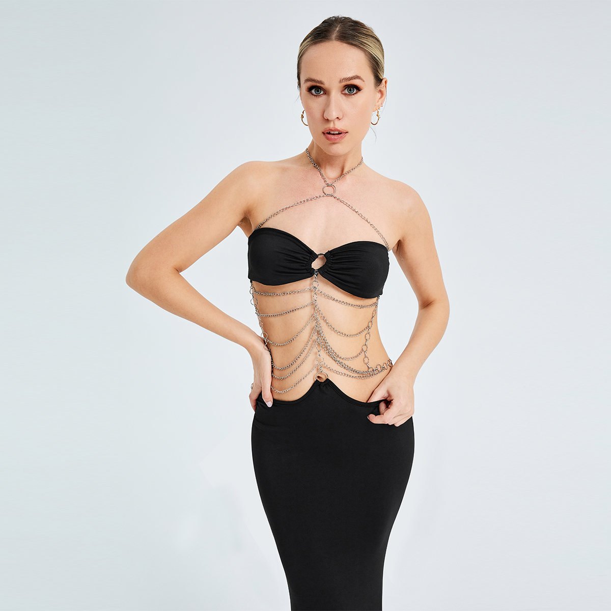Metal Chain Halterneck Wrap Bust Cutout Party Dress