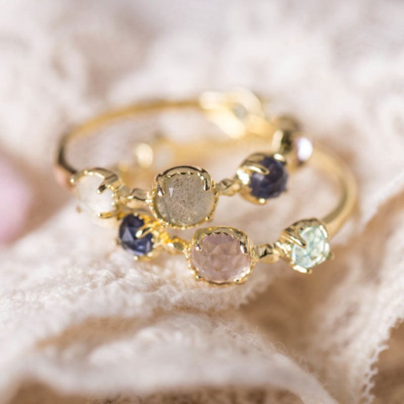 S925 Silver Topa Moonlight Laminated Evergreen Cordierite Amethyst Ring