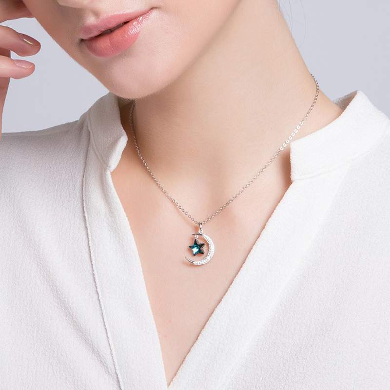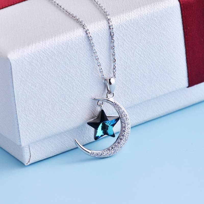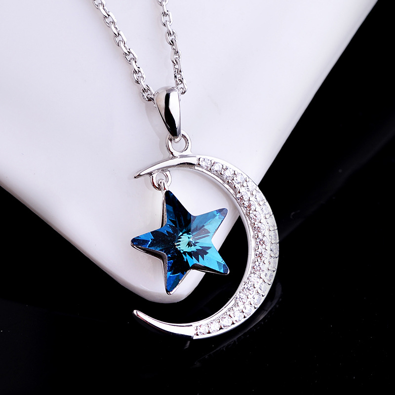 Star Moon Austrian Crystal Pendant Clavicle Chain