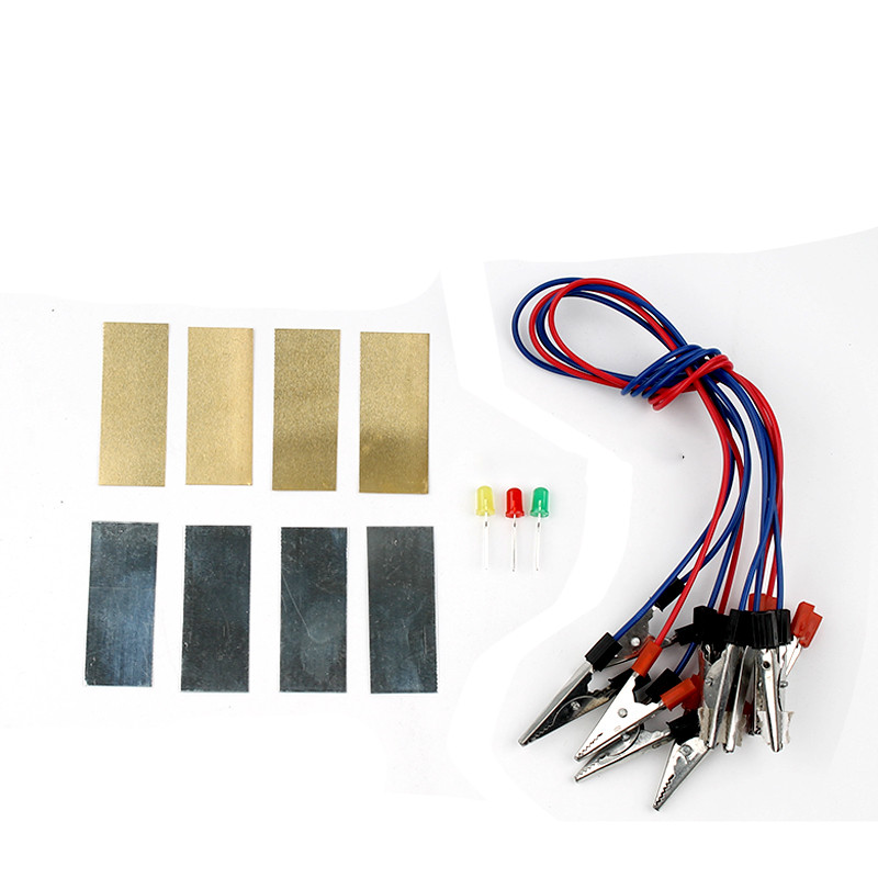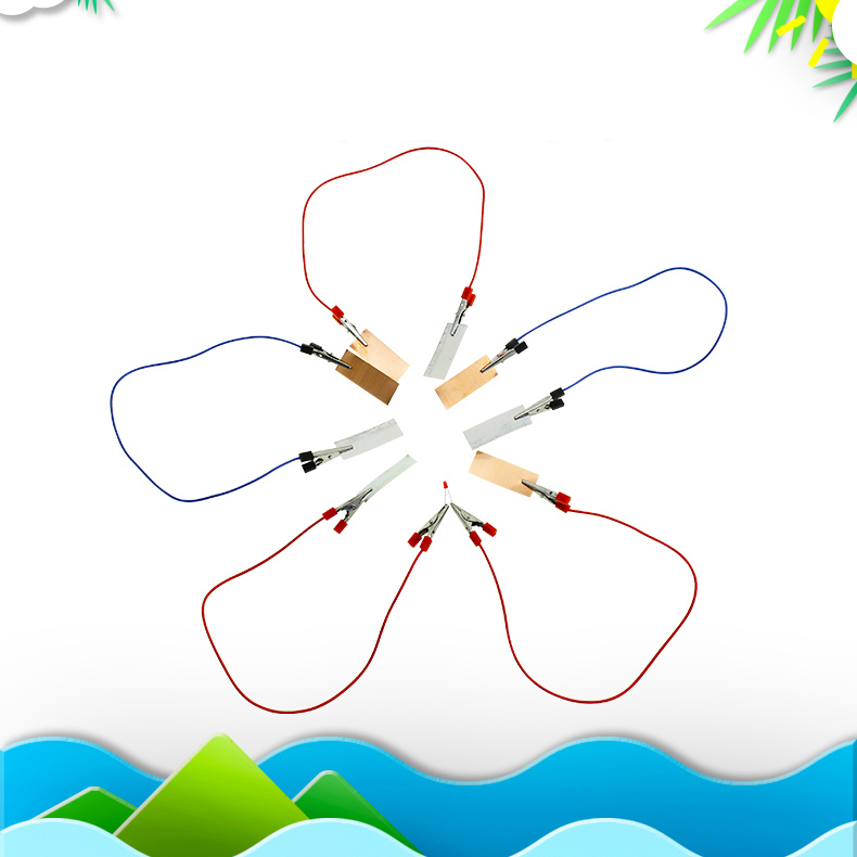 In the experiment, the two different metal pieces must have a certain distance and cannot touch each other. Two pieces of metal on a wire cannot be placed in the same fruit.