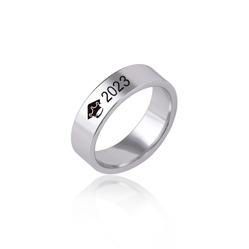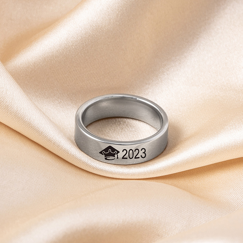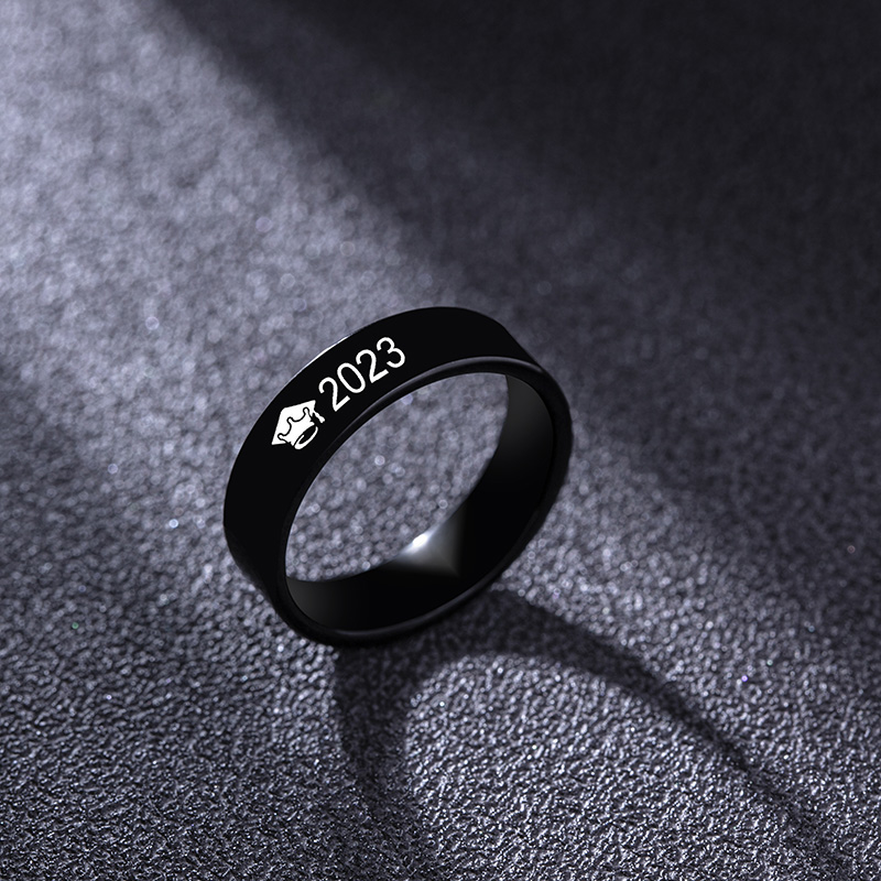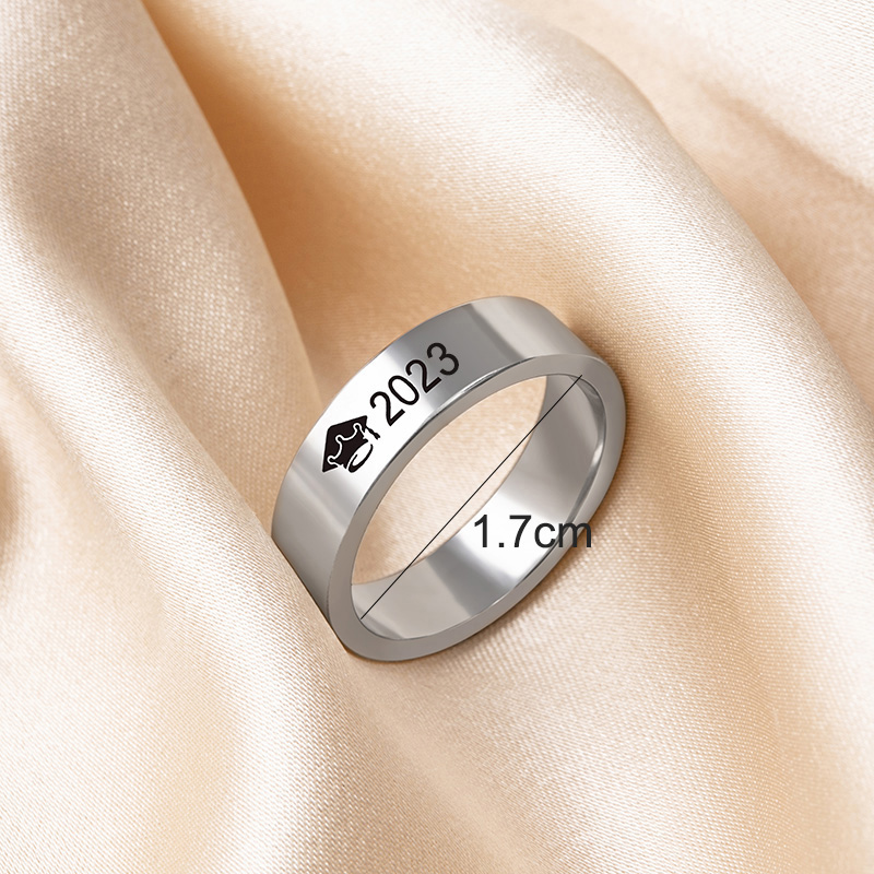 2023 New Graduation Cap Stainless Steel Ring Silver Black For Men Women Graduation Gift
