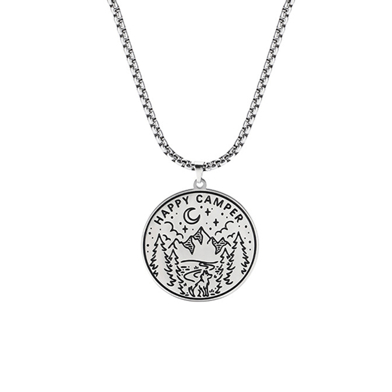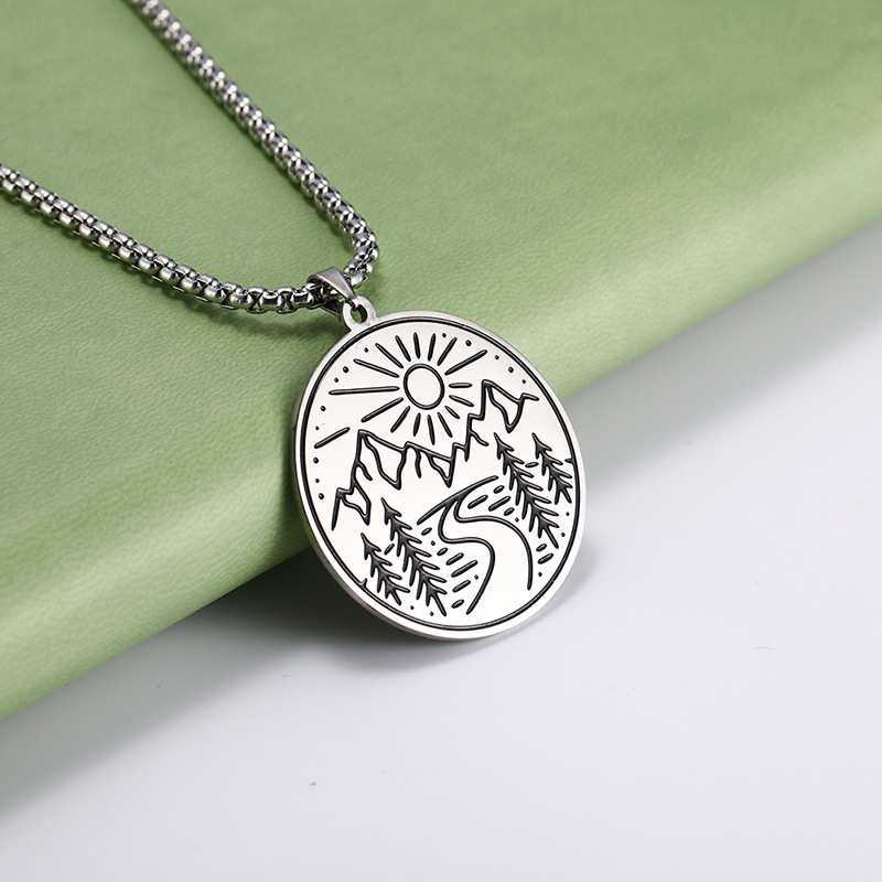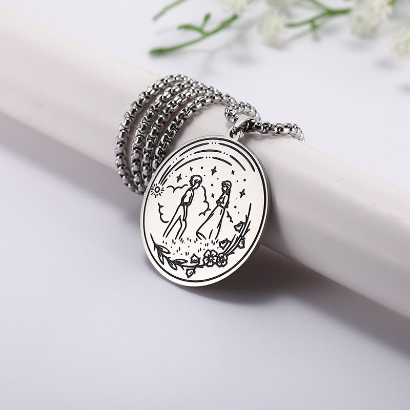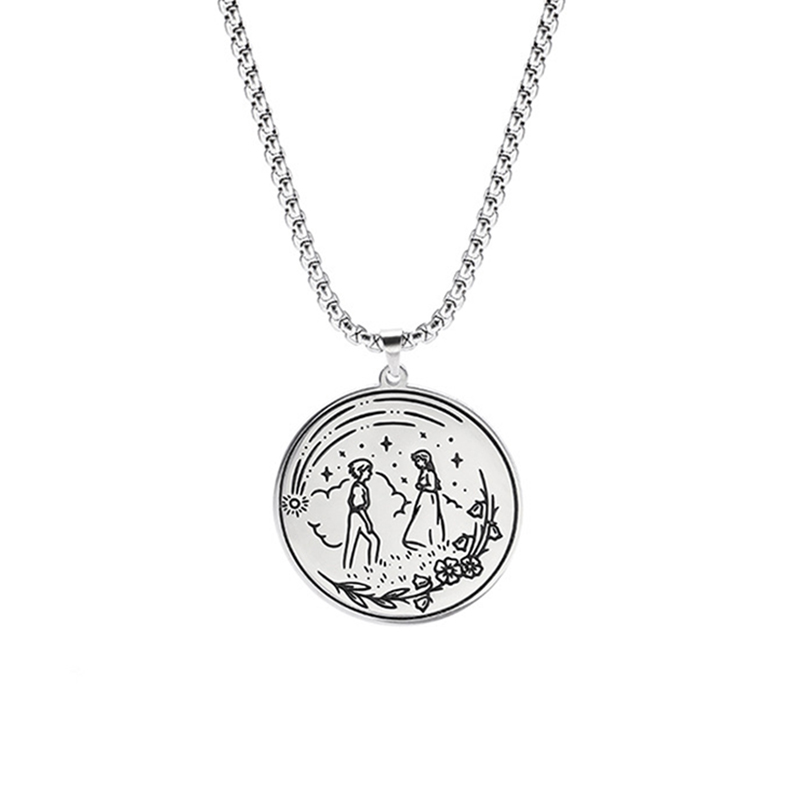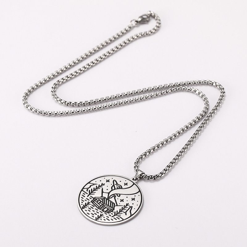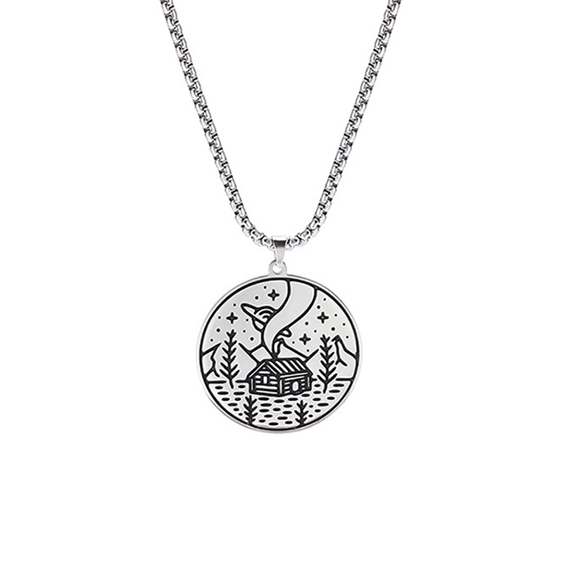 Landscape Painting Round Pendant Necklace Romantic Love Stainless Steel Box Chain Necklace