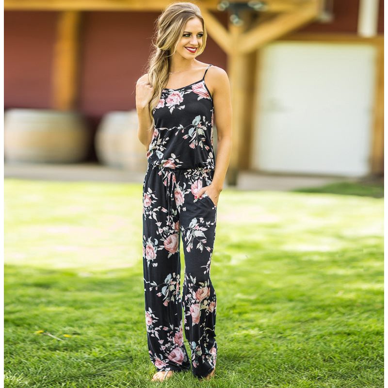 Fashion Nd Suspender Printed Loose One-Piece Pants