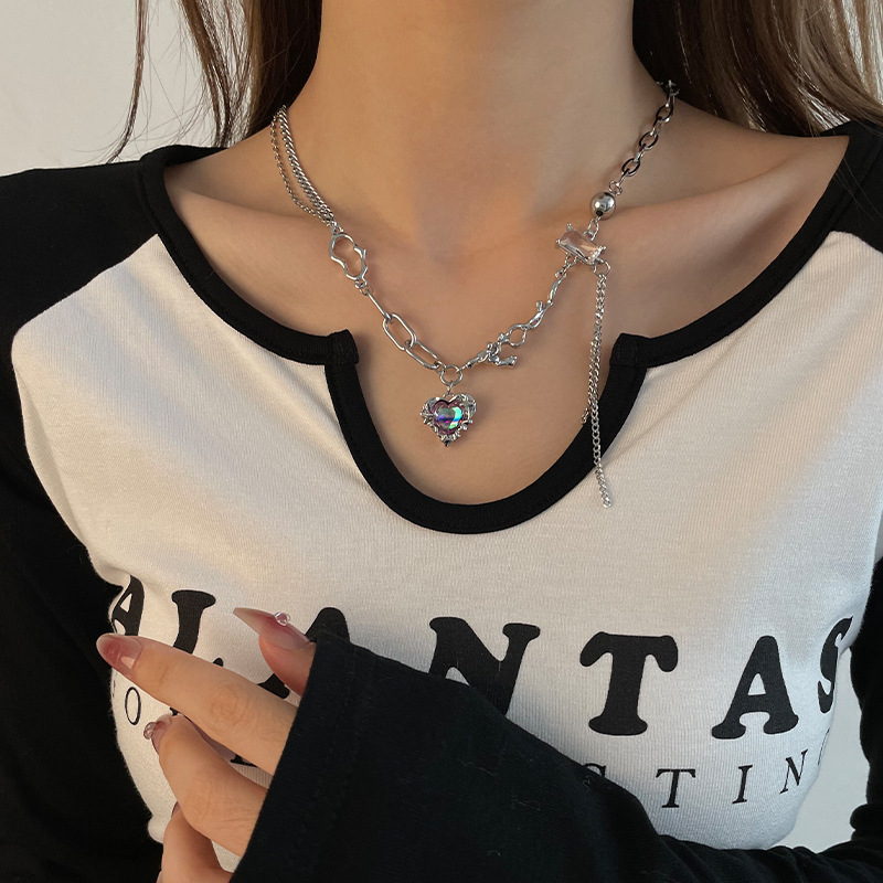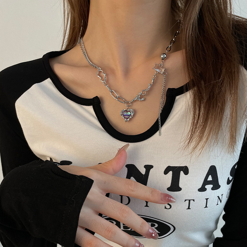 Color: Colorful love square diamond fringe necklace