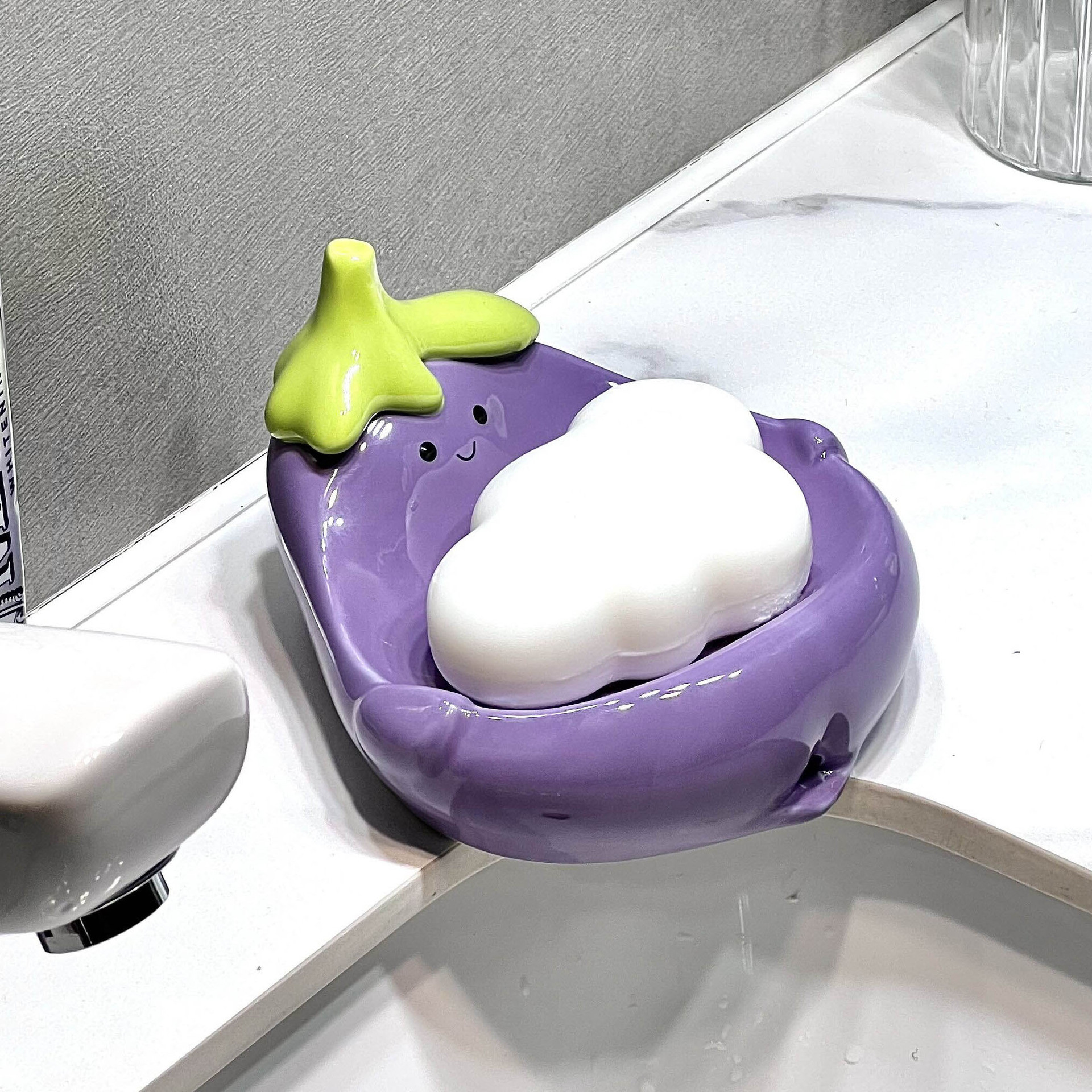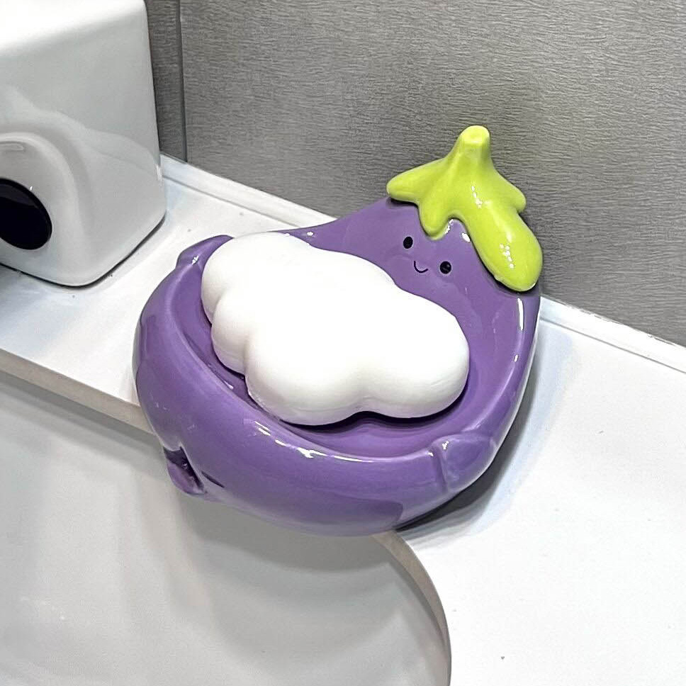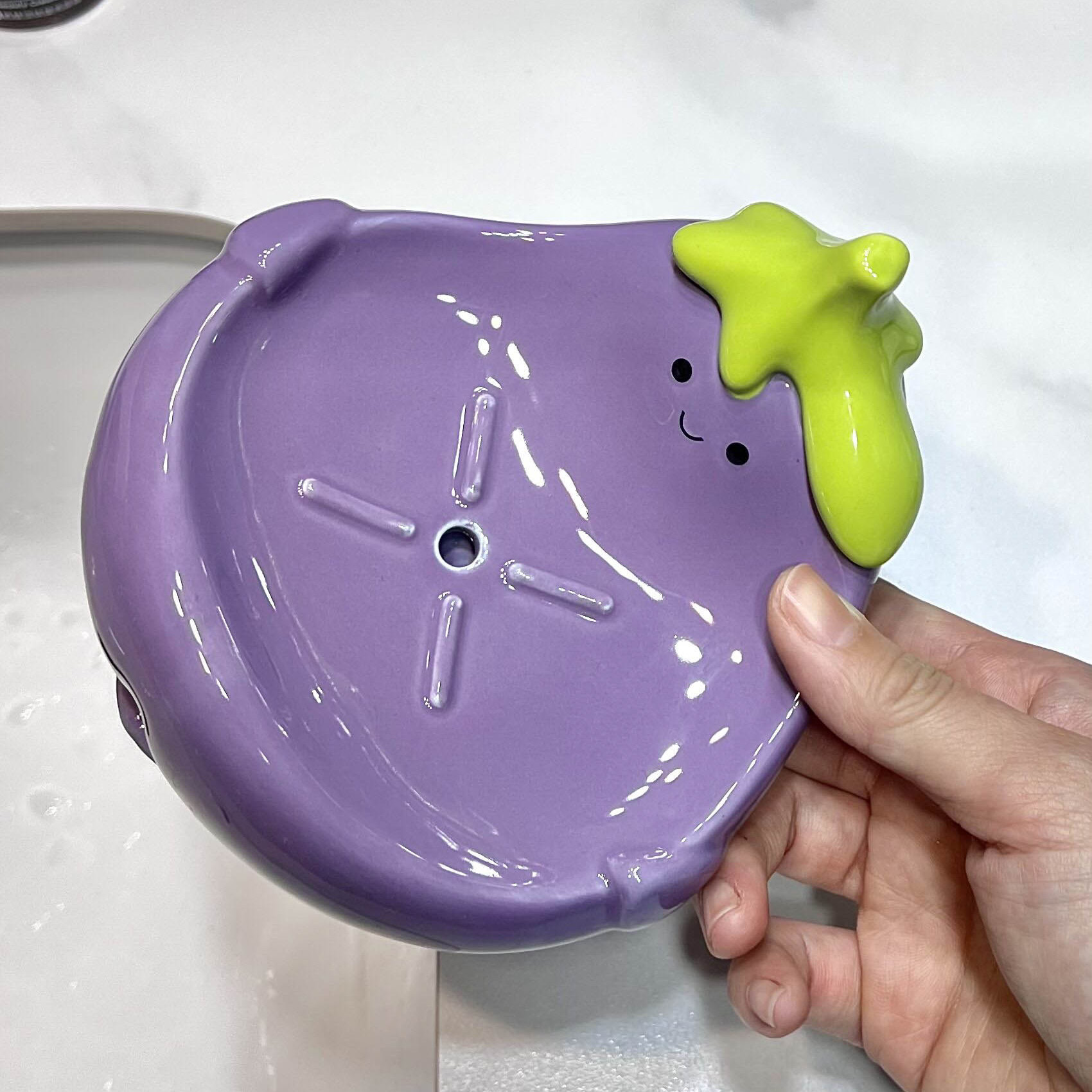 Product information:Color: eggplant soap dish (draining), crying eggplant soap dish (draining), shy eggplant soap dish (draining)Material: Ceramic