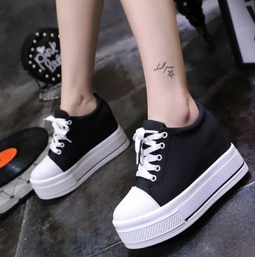 Product informationSize: 34- -39Colors: White, BlackUpper: canvas + microfiberInside: BrieSole: non-slip rubberHeel height: increase within 5cm+4cmClosed: lace-upPacking listShoes x1 pair