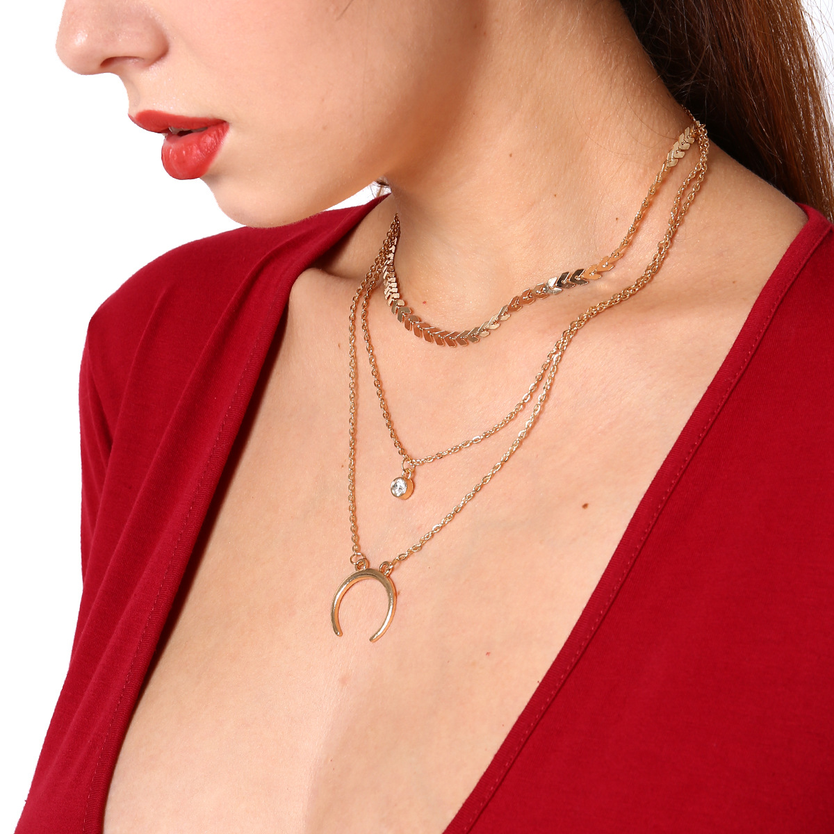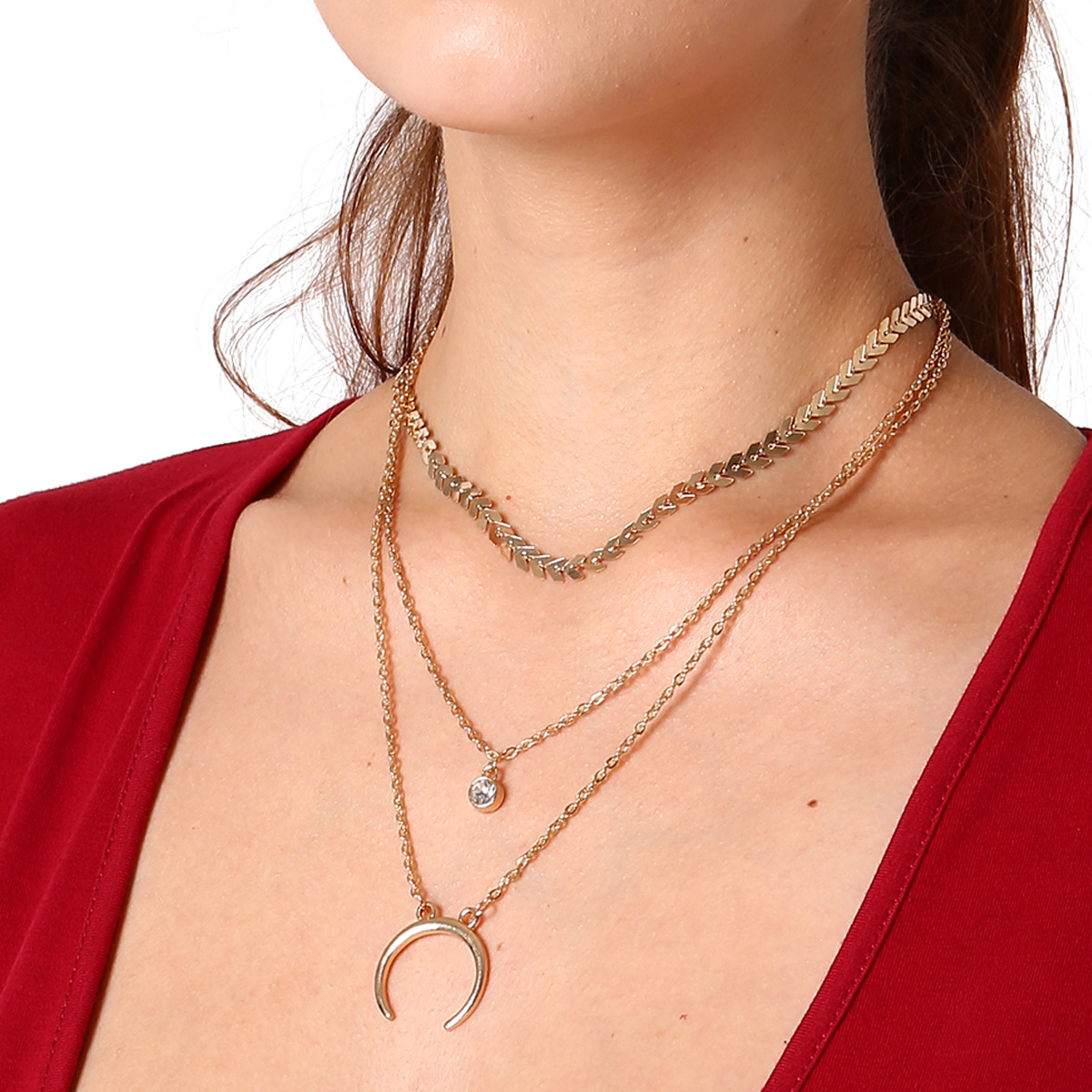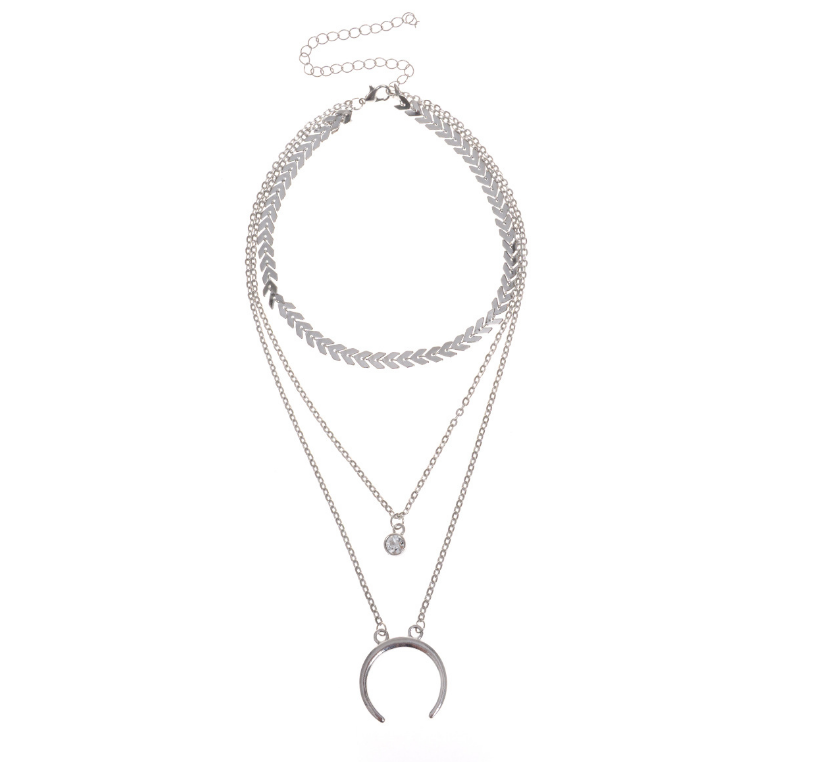 Vintage Ethnic Style Accessories Alloy Pendant Drill Multi Layer Clavicle Necklace