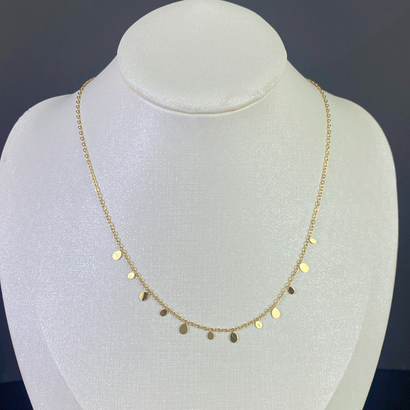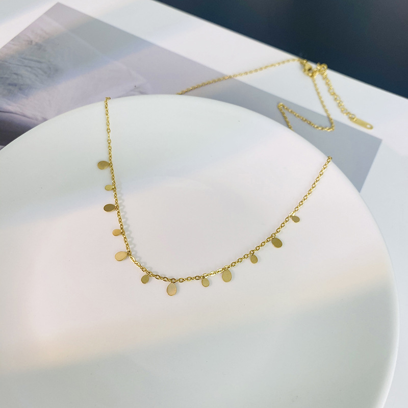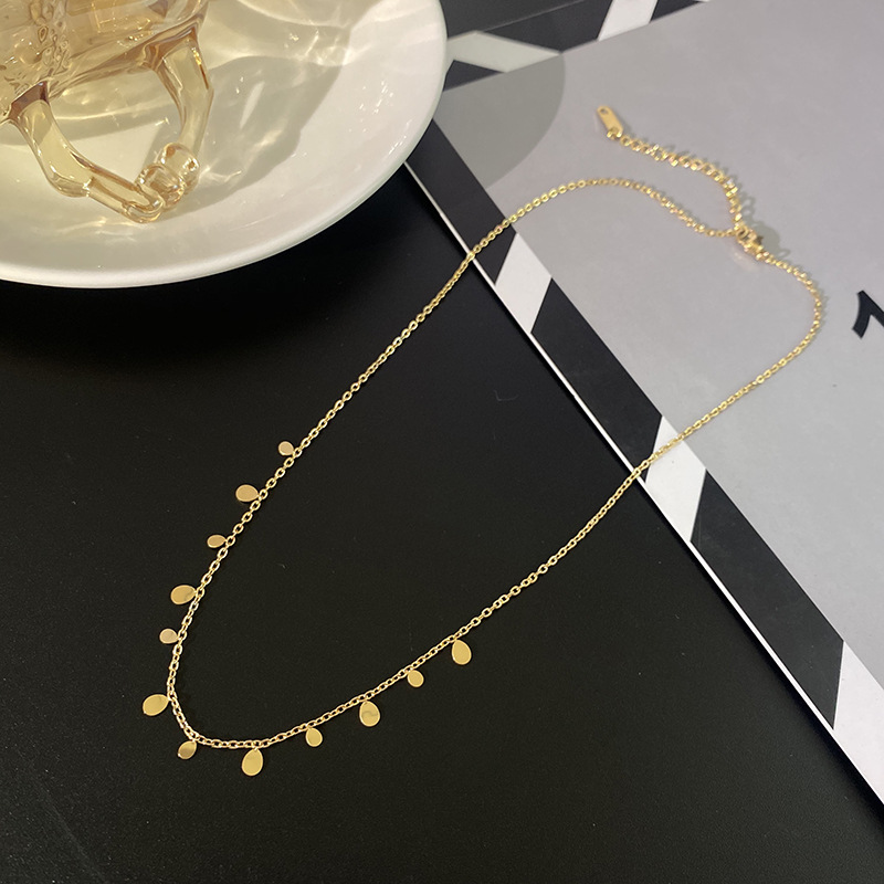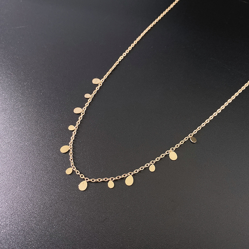 Product information:Color: K gold water droplets, K gold round Chain style: cross chain Material: titanium steel Popular elements: metal, chain, geometry Style: Women's Shape: Geometry