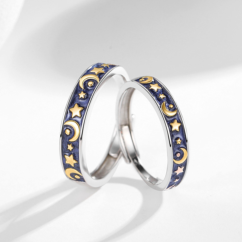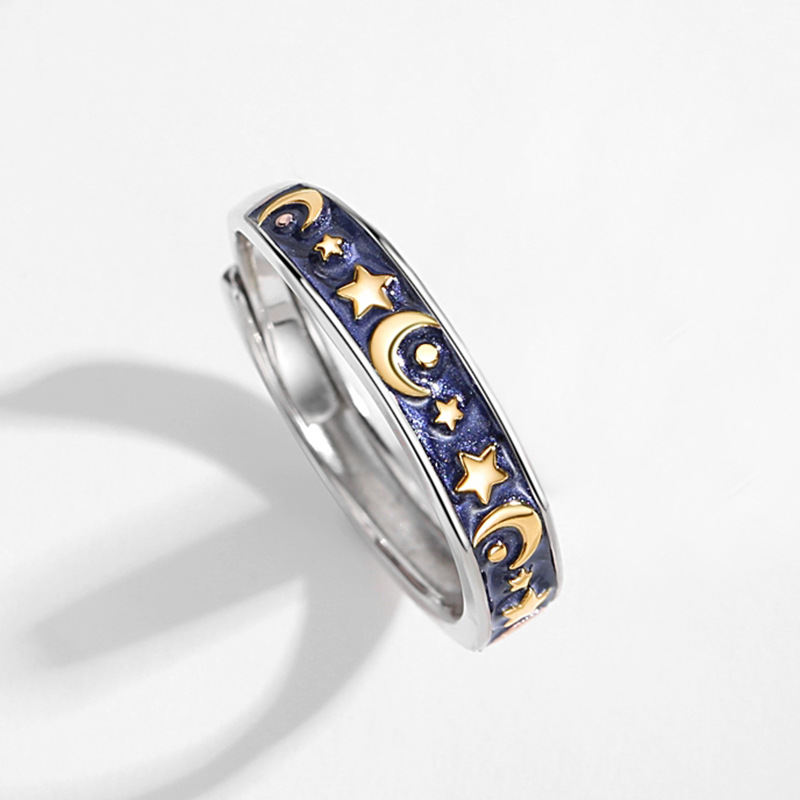 Specifications:Product name: Star moon ringStyle: Sun moon galaxy seriesMaterial: 925 silver custom colored glassSize: One size adjustable openingProcess: Three layer thickening electroplating