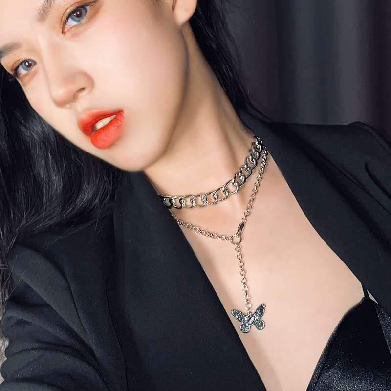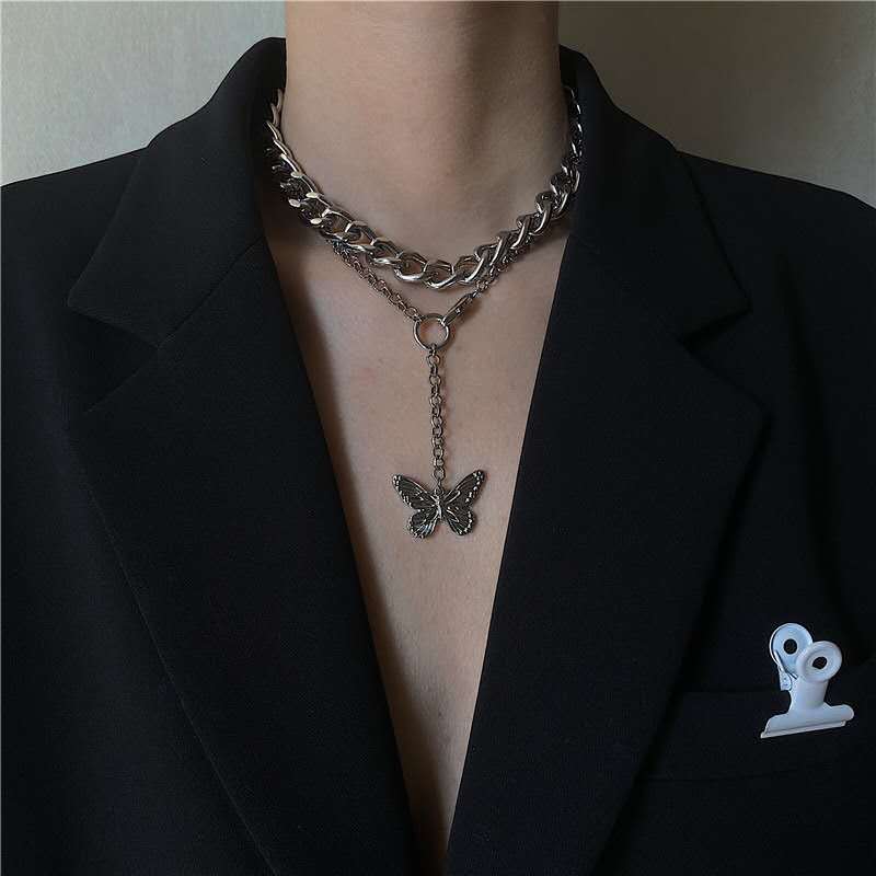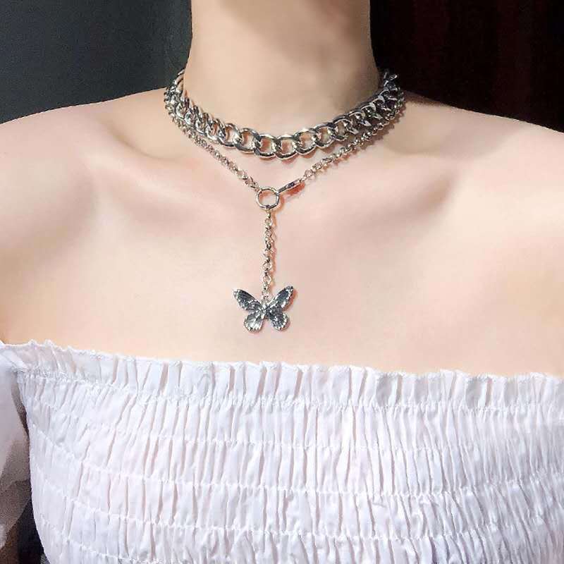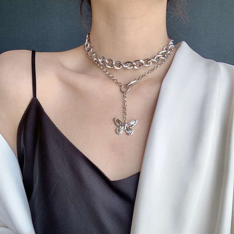 Product information:Product Name: Butterfly NecklaceMaterial: AlloyType: NecklaceStyle: UnisexColor: butterfly, thick necklace, two-piece set