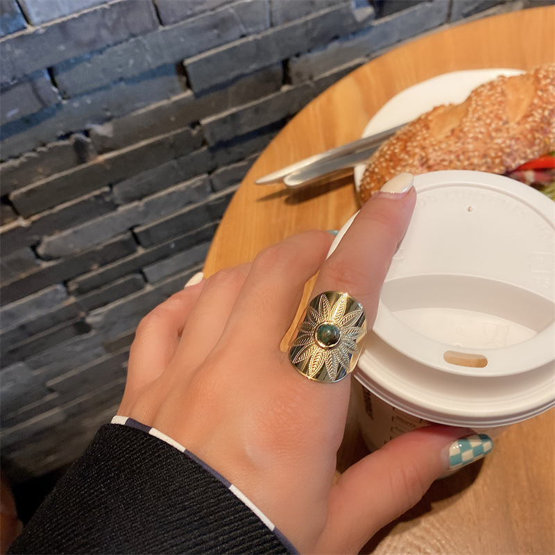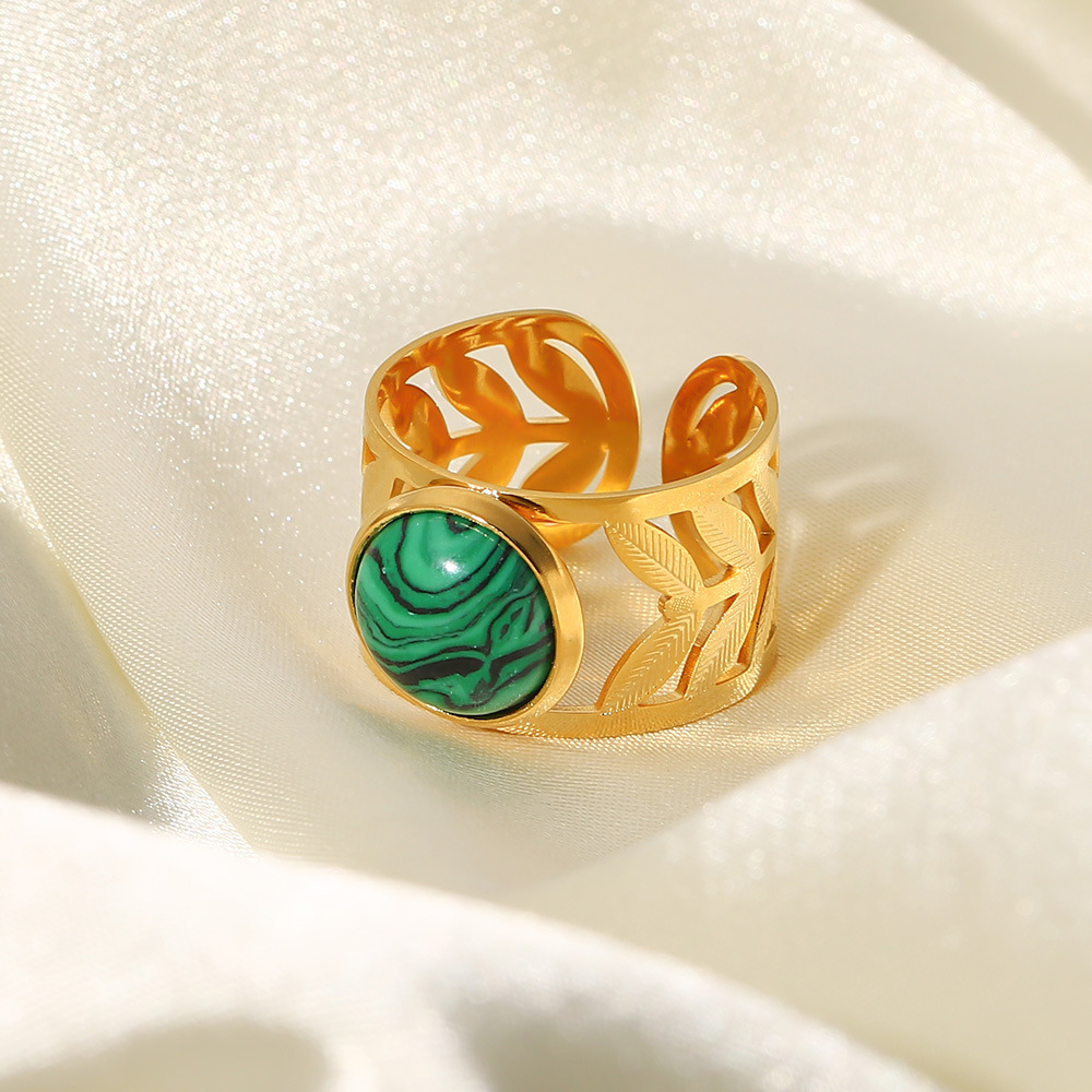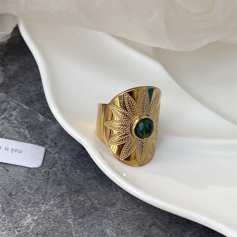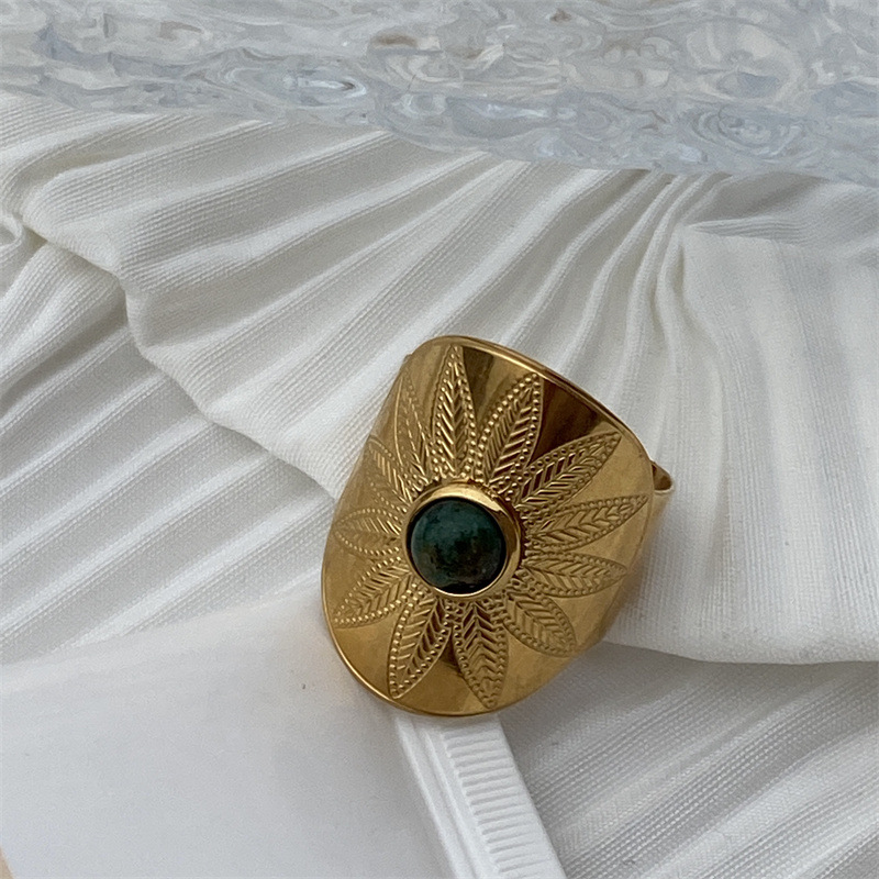 Type: RingMaterial: titanium steelStyle: fashion OLShape: geometricStyle: Women'sInlay material: turquoiseColor: GoldSize: Opening adjustable