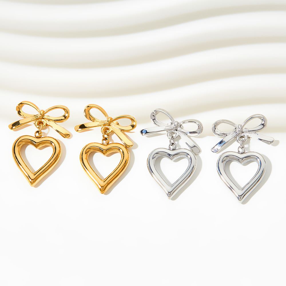 Style: Korean style girl stainless steel heart-shaped earrings