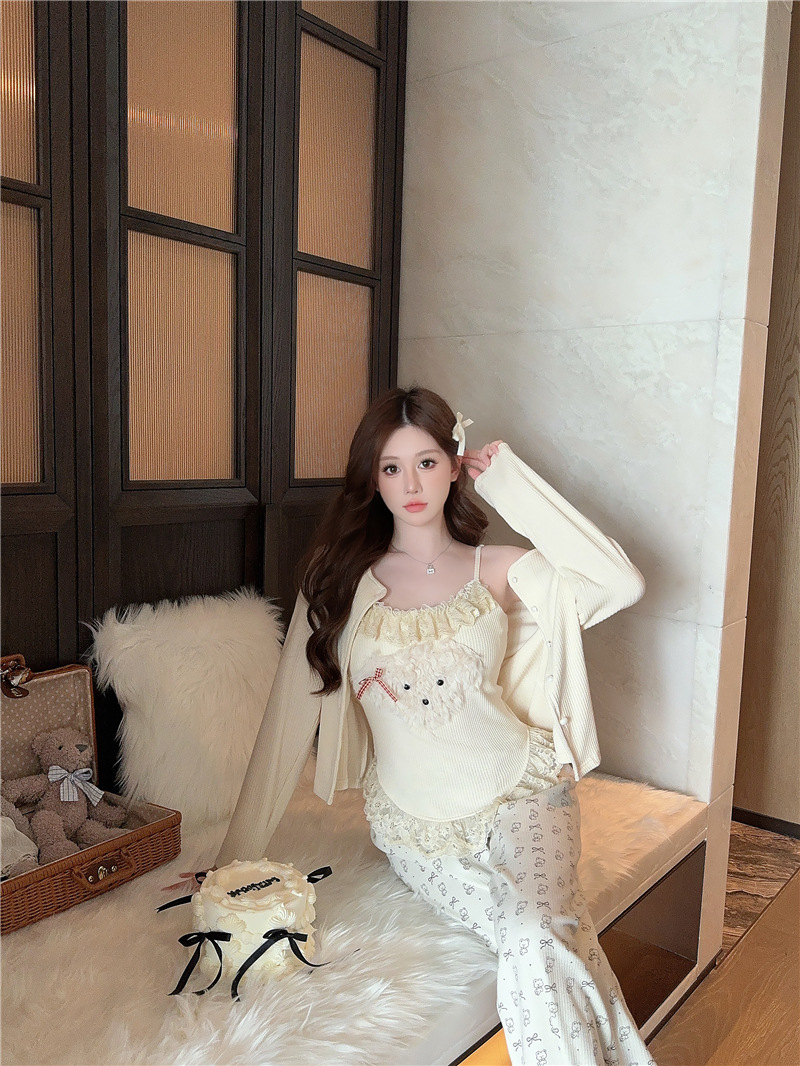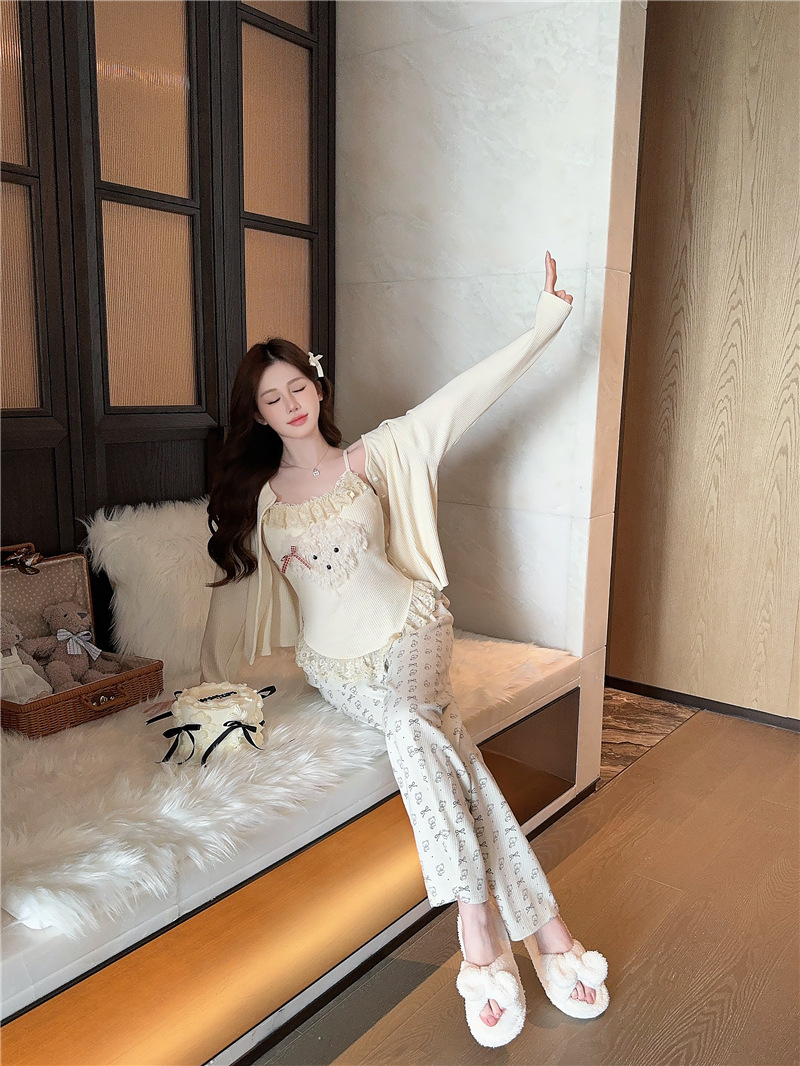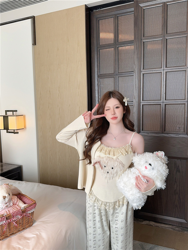 Color: 5818 concave striped modal three-piece set apricot