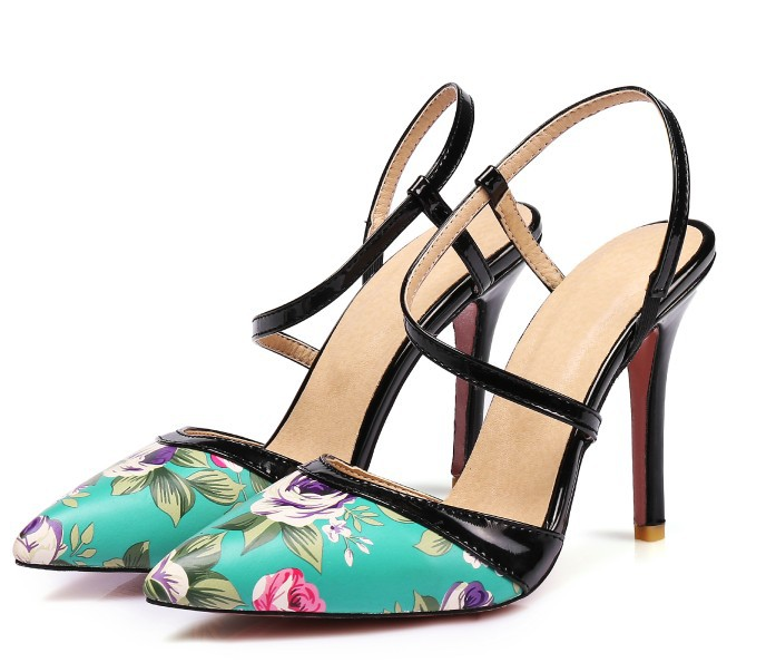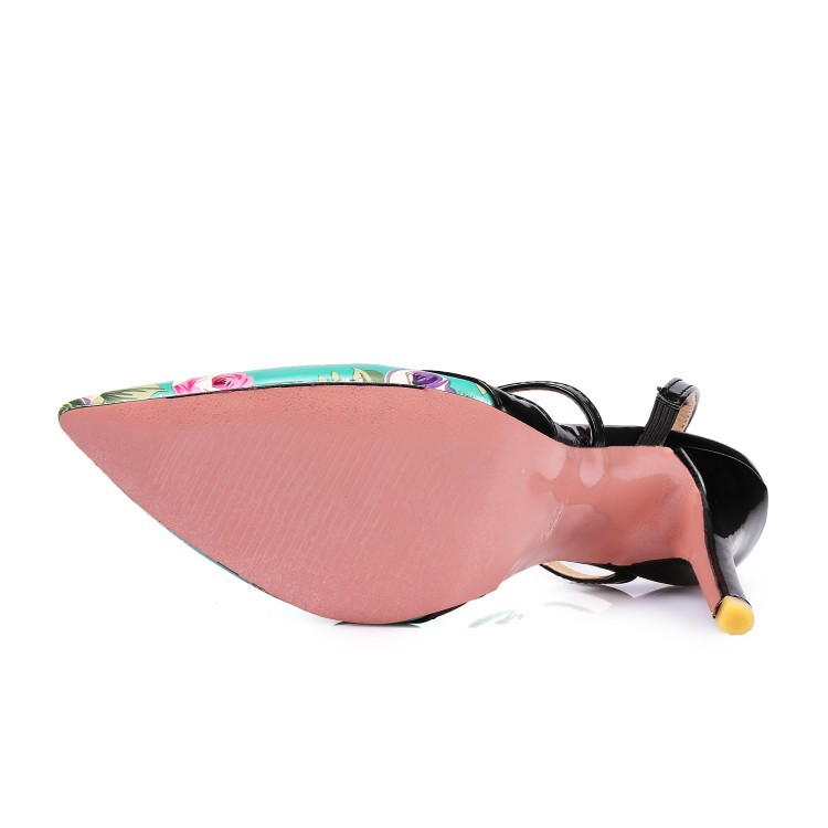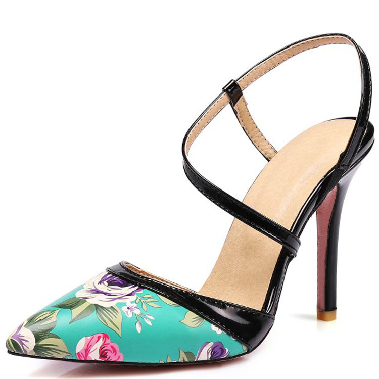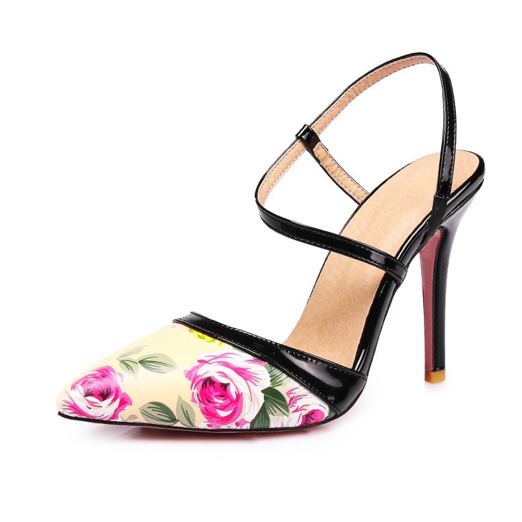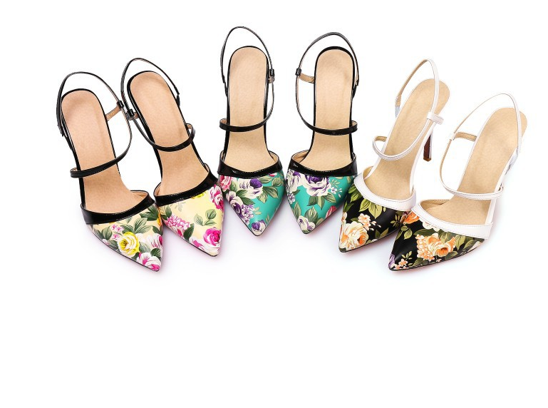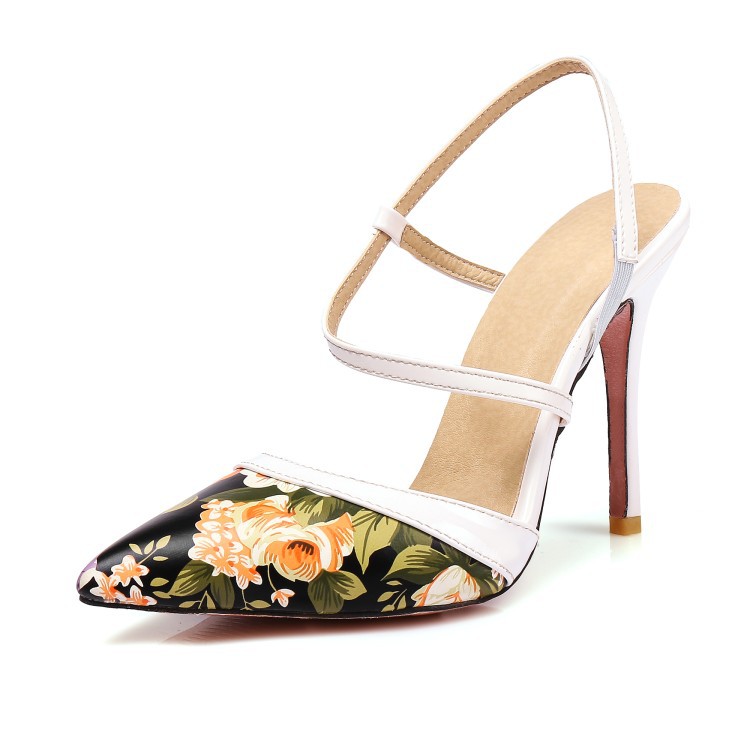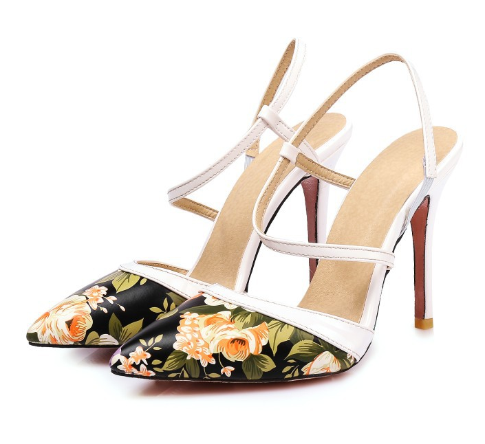 Printed baotou stiletto women's shoes pointed big size ladies high heels