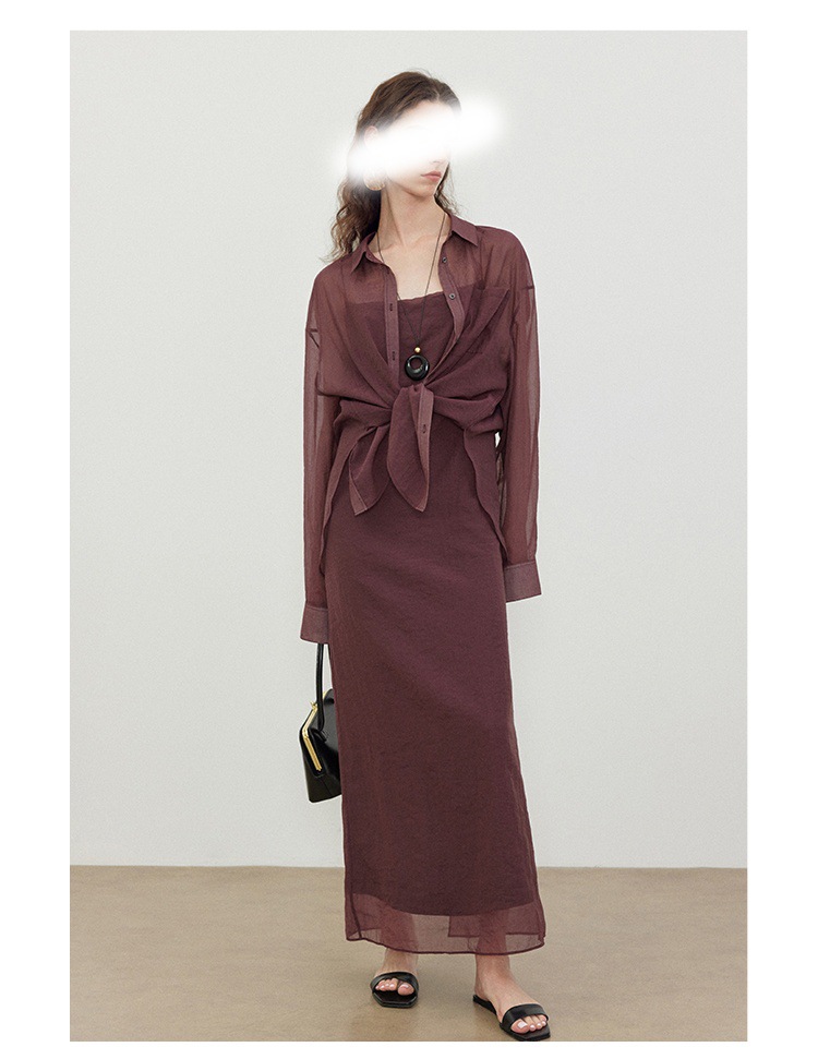 Color: 358 linen apricot shirt, 359 linen apricot suspender skirt, 358 pomegranate red shirt, 359 pomegranate red suspender skirt