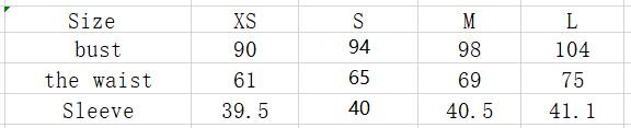 | Sleeve | 39.5cm | 40cm | 40.5cm | 41.1cm |
