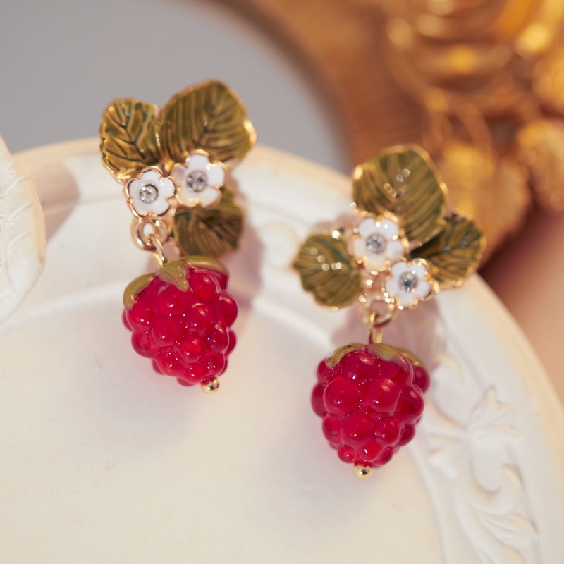 Color classification: green leaf red raspberry silver needle a pair of green leaf red raspberry spiral ear clip a pair of green leaf yellow raspberry silver needle a pair of green leaf yellow raspberry spiral ear clip a pair of red berry and flower silver needle a pair of red berry and flower spiral ear clip a pair of yellow berry and flower silver needle a pair of yellow berry and A pair of flower spiral ear clips