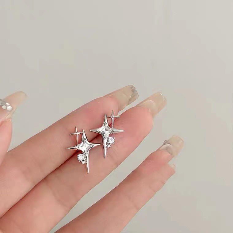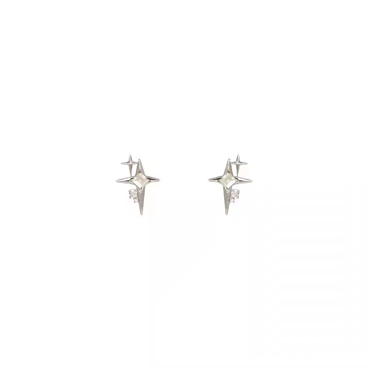 Color: Platinum plated - Cross star stud earrings