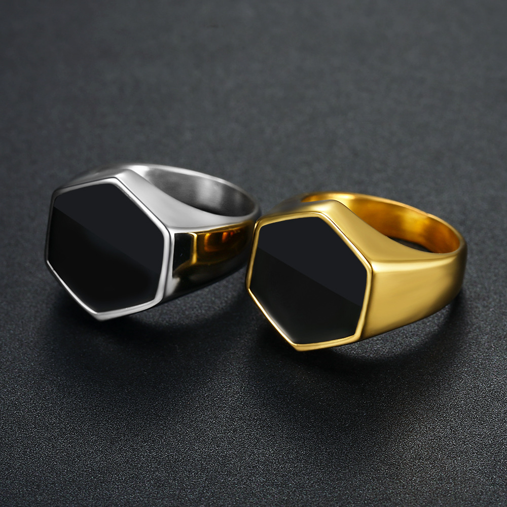 Stainless Steel Bright Black Gutta Percha Ring For Men
