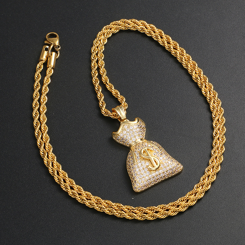 Material: CopperProcessing technology: electroplatingType: item pendant, pendantStyle: UnisexModeling: money bagApplicable gift-giving occasions: wedding, travel commemoration, employee benefitsChain style: twist chain