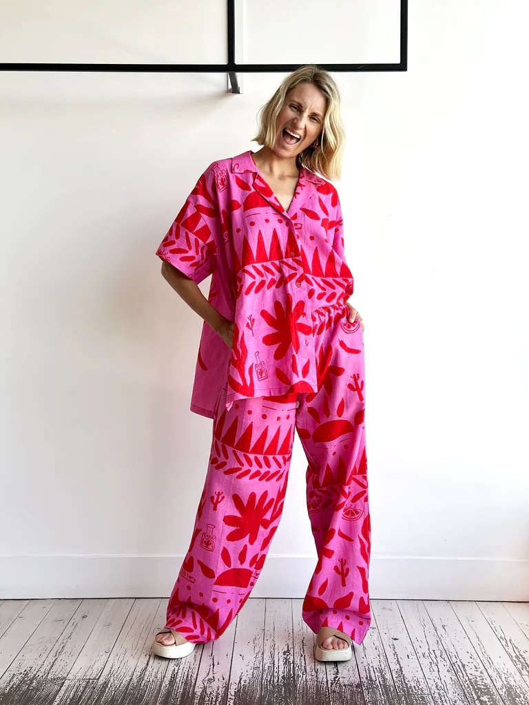 Color: Rose red trouser suit